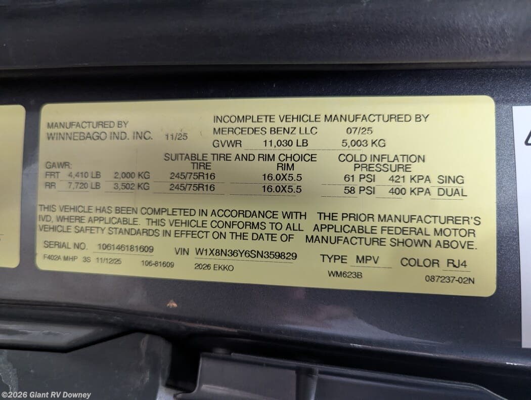 Request More Info on this 2026 Winnebago Ekko Sprinter 23B Offered for sale by Giant RV