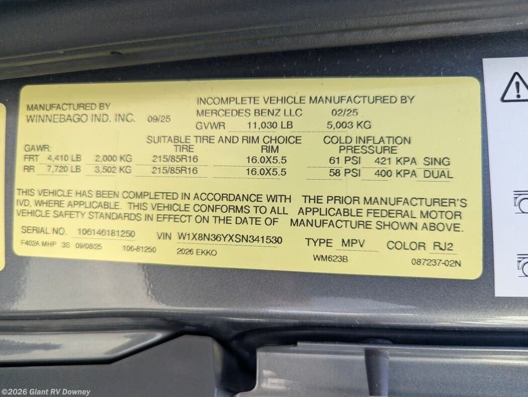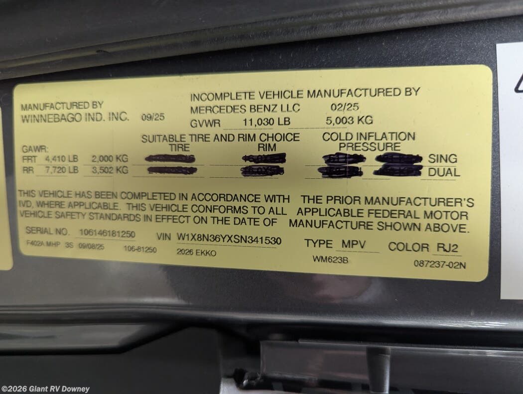 Request More Info on this 2026 Winnebago Ekko Sprinter 23B Offered for sale by Giant RV