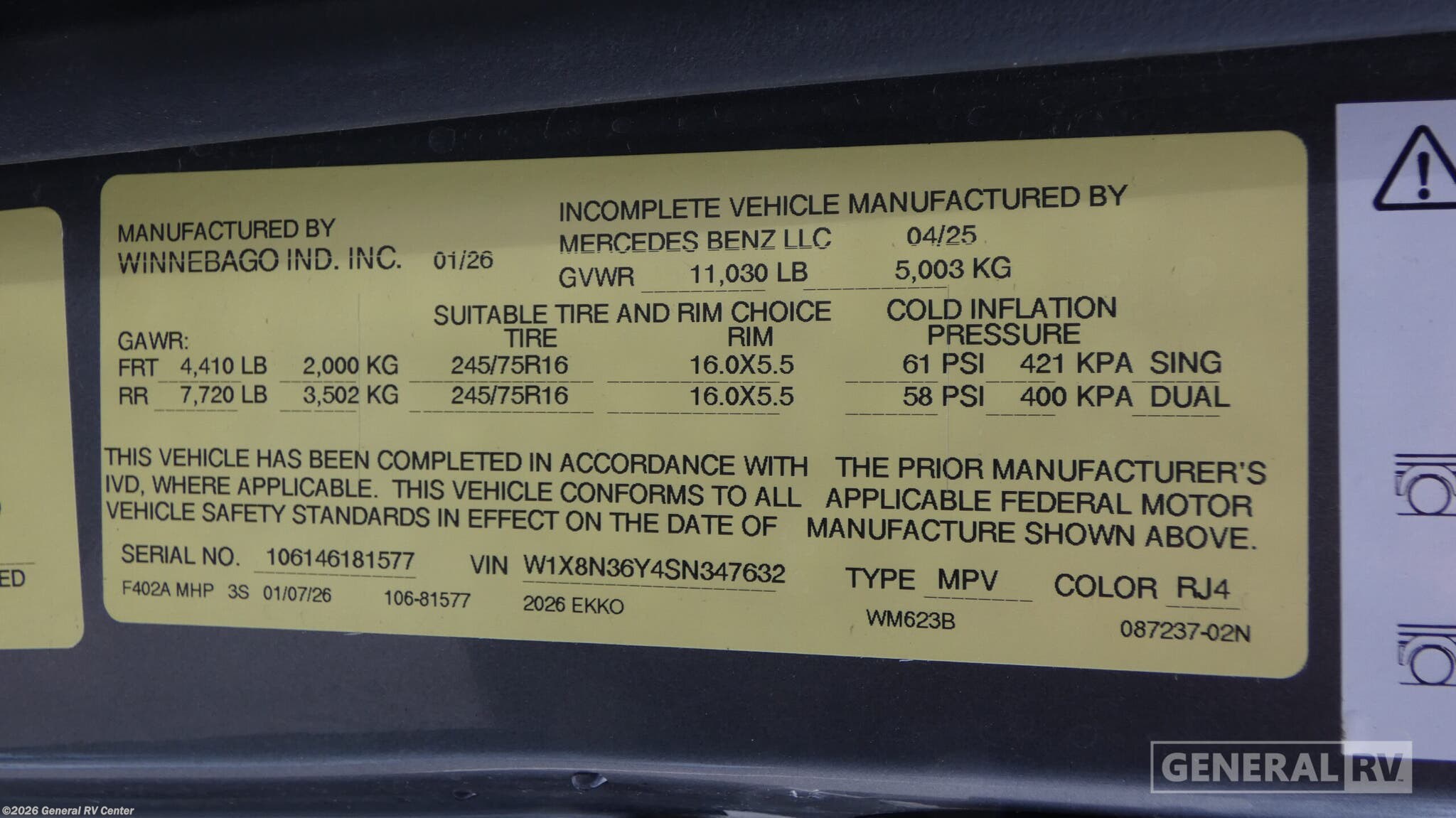 Request More Info on this 2026 Winnebago Ekko SPRINTER 23B Offered for sale by General RV Center