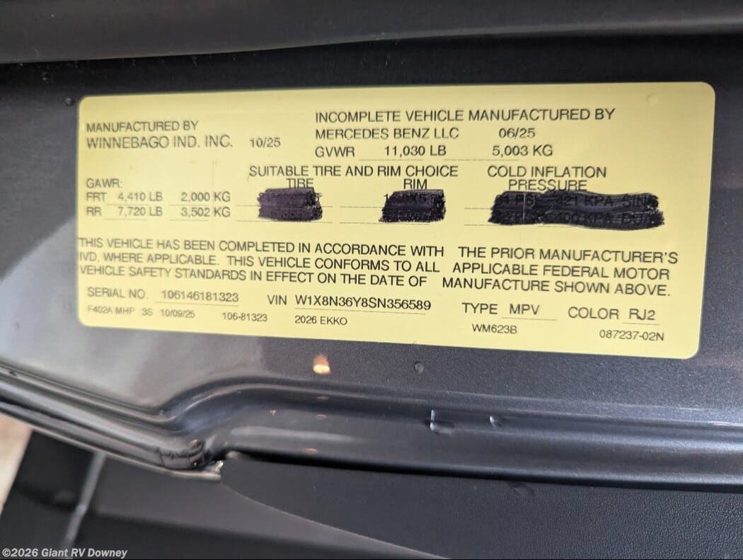 Request More Info on this 2026 Winnebago Ekko Sprinter 23B Offered for sale by Giant RV