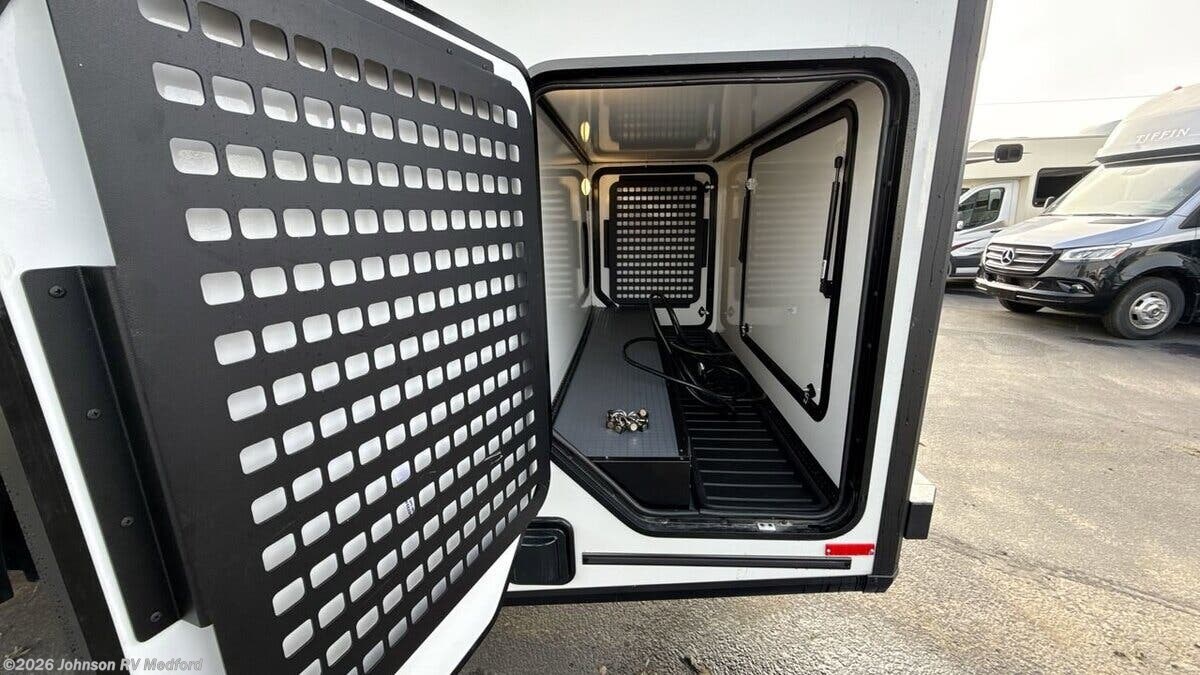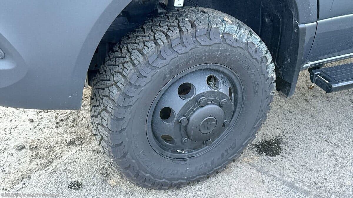 Features Include: Two Alternators, All Terrain Tires, Spare Tire, Mud Flaps, Driver Alert, Fog Lamps, Intersection Assist, Lane-Keeping Assist, Rain-Sensing Wipers, Aluminum Cab Steps, Sunvisors, Power Windows, Porch Light, Entry Assist Bar, LED Ceiling Lighting, Accent Lighting, Vinyl Flooring, Acrylic with Screen, Cassette Shade, Deluxe Power Vent, Remote Dining, Pantry, Laminate Countertops, Stainless Steel Sink, Sink Cover, Systems Center, Satellite Ready, Entertainment System, USB Ports Sleeping, Room Divider Curtain, Flex Bed Kit, Reading Lights, 100v 12v USB Outlets, Wardrobe, Storage Drawers, Metal Clothes Rod, Medicine Cabinet, Mirror, Molded Round Sink, Shower Wall Surround, Shower Curtain, Battery Heat Package, Bluetooth, 30-Amp Service Cord, 80-Amp Charger, GFCI Circuit, 2500w LP Generator, Two 20# LP Bottles, Truma VarioHeat, 13.5k AC, All Weather Prepped, Roof Access Ladder