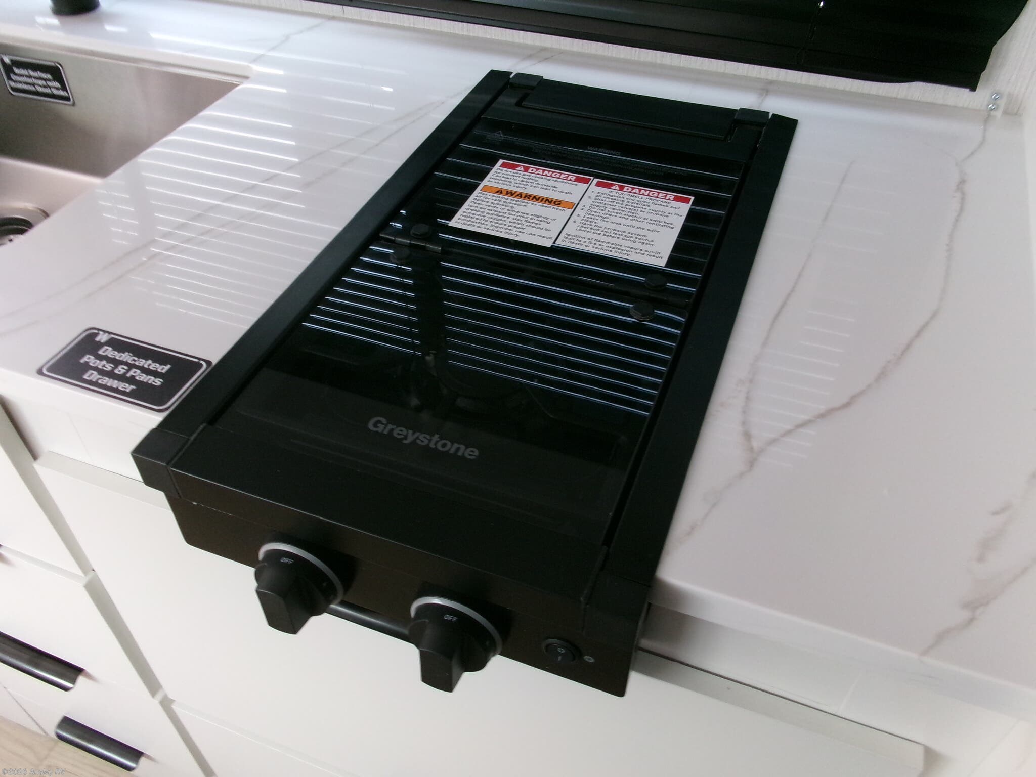 Pack your bags and load up the kids to head out on a great camping adventure as a family! There is a front 54" x 74" full-size bed for you and a set of rear corner bunk beds for the kids, plus they can bring a friend to sleep on the 32" x 74" booth dinette. You can prepare meals for the whole group with the three burner cooktop and the 10.3 cu. ft. 12V refrigerator, plus you can pop a bag of popcorn in the microwave for movie night with the Smart TV. And a private toilet and 24" x 36" shower next to the bunks and offers a great place to get ready for the day or bedtime.