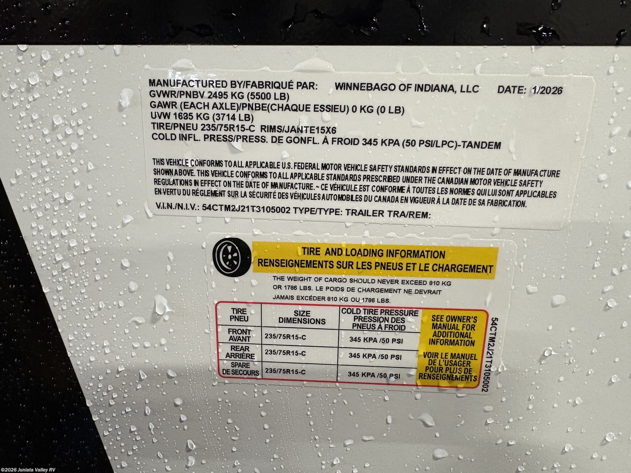 2026 Winnebago Micro Minnie 1800BH Specifications
