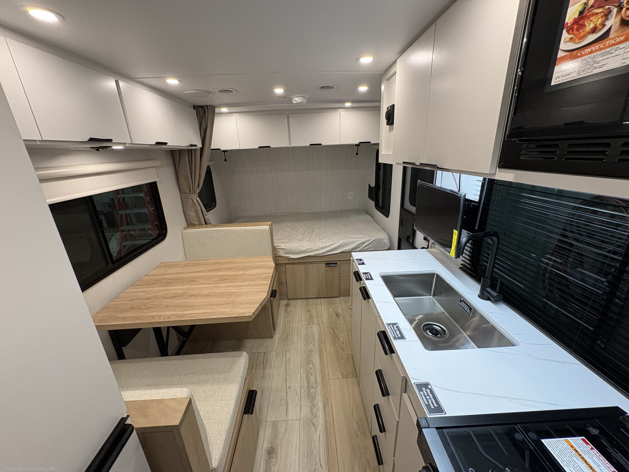 Azdel Composite Panels, Booth Dinette, Dinette Bed, Kitchen Sink, Living Quarters, Overhead Cabinetry, Pantry, Pet Friendly, Queen Bed, Queen Mattress, Roof Vents, Self Contained, Shower, Solid Surface Countertops, Toilet, Wardrobe(s)