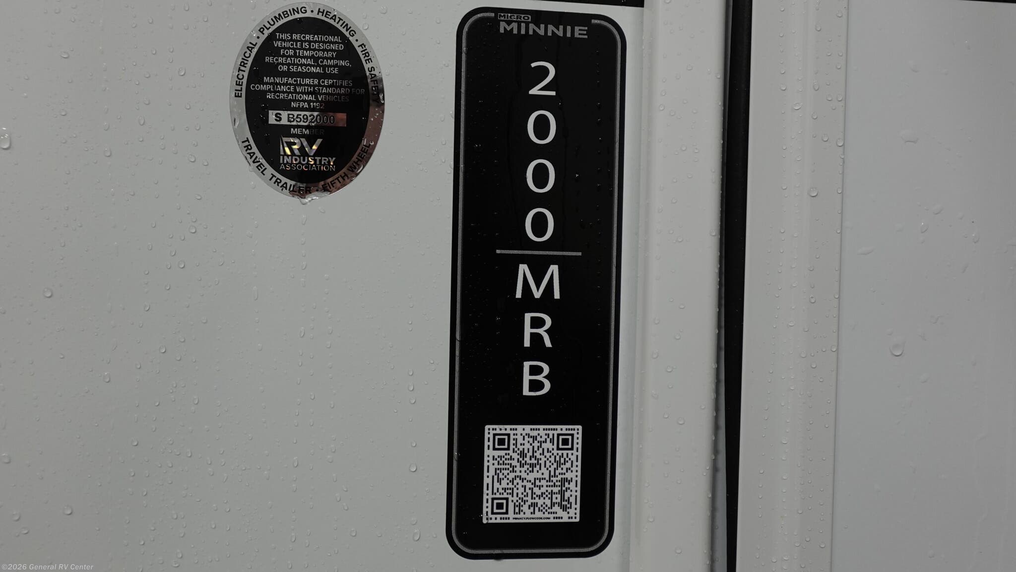 **Winnebago Micro Minnie 2000MRB travel trailer highlights:** * Murphy Bed * Rear Bathroom * Booth Dinette * Compact Galley Kitchen * Exterior Storage Enjoy big comfort in a compact, easy-to-tow design with the Micro Minnie 2000MRB travel trailer. During the day, the front Murphy bed folds up to create extra living space, while the booth dinette provides a comfortable spot for meals or relaxing and can convert to additional sleeping space at night. The galley kitchen offers everything you need to prepare simple meals on the road, and the rear bathroom gives you a private space with a toilet, shower, and sink. With smart storage throughout and a lightweight build, this Micro Minnie is ideal for couples or solo travelers looking to explore with confidence and convenience. Its 7' width makes maneuvering and parking a breeze, while thoughtful storage solutions help keep gear neatly tucked away. You’ll enjoy modern comforts like a Smart TV and a 15' power awning with LED lighting for relaxing evenings outdoors.