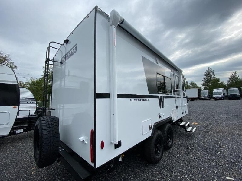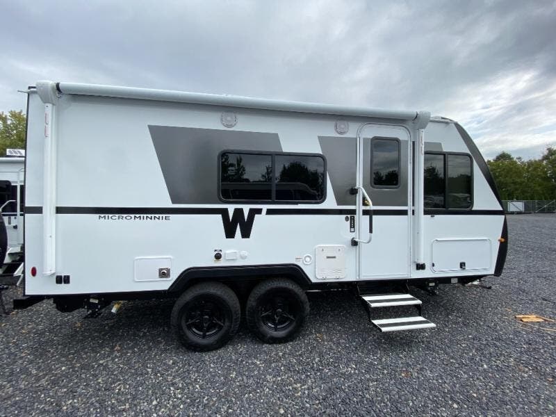 Start out on your boundless journey in one of these Winnebago Micro Minnie travel trailers! Towing is made simple with the 7' width to keep your Micro Minnie in your rear-view mirror. They don't lack in features either although they are compact in size. The spacious galley including a sink, refrigerator, a cooktop, and even a convection microwave oven allows you to cook without compromise. You will not only enjoy the entertainment found indoors with a Smart TV, a JBL premium sound system and Aura Cube high performance mechless media center, but outdoors you will also enjoy the JBL premium speakers and a power awning with LED lighting. Each model also comes with flexible exterior storage to make packing quick and easy, a 200-watt solar panel for off-grid camping, and Dexter TORFLEX torsion stub axles for smooth towing!