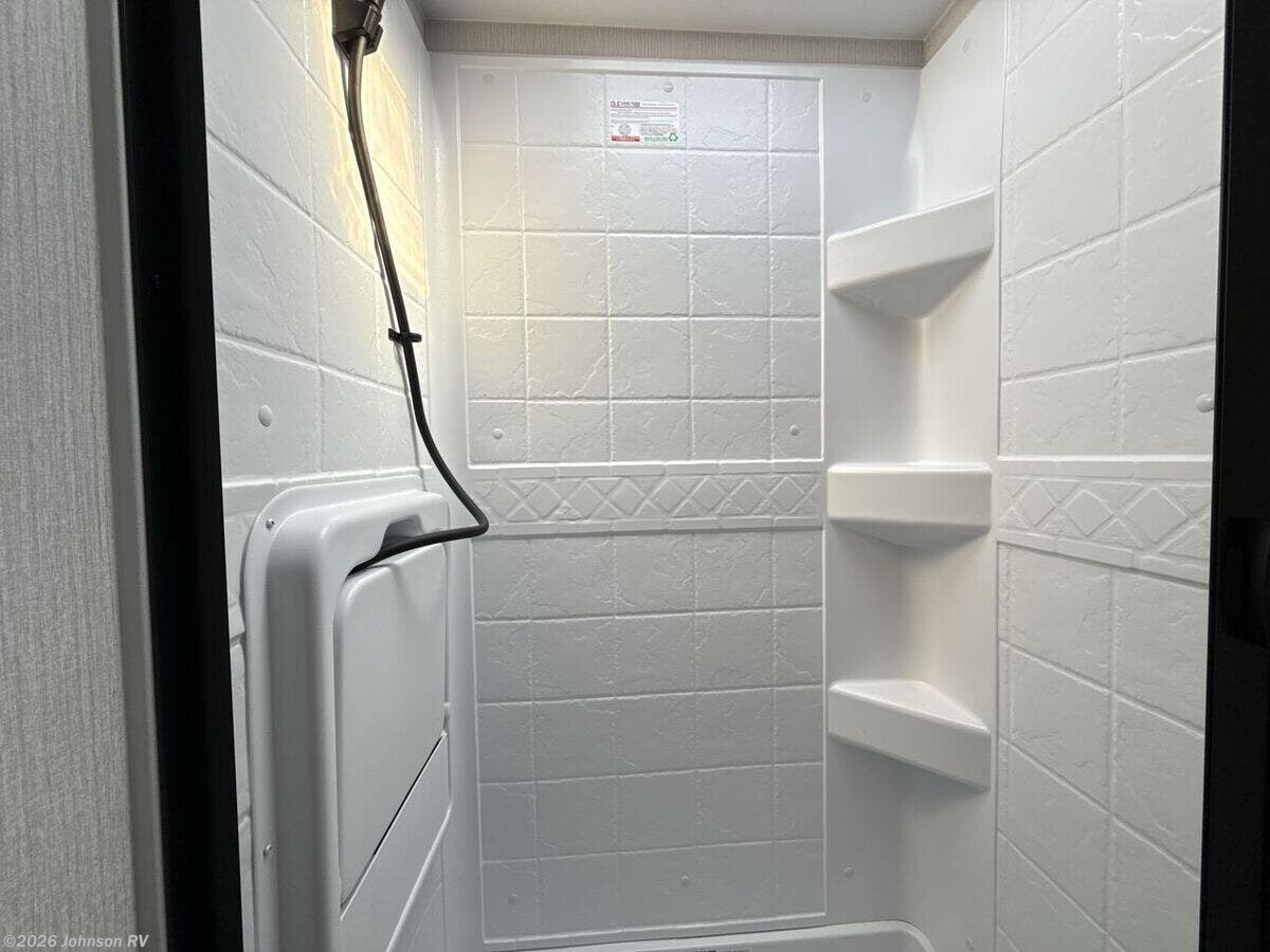 Features Include: Sink Cover, Smart TV, Privacy Curtain, Wardrobe, Nightstand Bathroom, Bathroom Door, Porcelain Toilet, 200w Solar Panel, Inverter Prep, Two 20# LP Bottles, 13.5k AC, Power Tongue Jack, NXG Engineered Frame, Fiberglass Exterior, CSA Vents, Roof Ladder