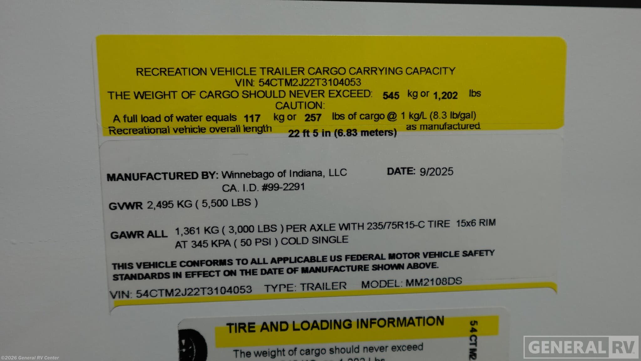 Request More Info on this 2026 Winnebago Micro Minnie 2108DS Offered for sale by General RV Center