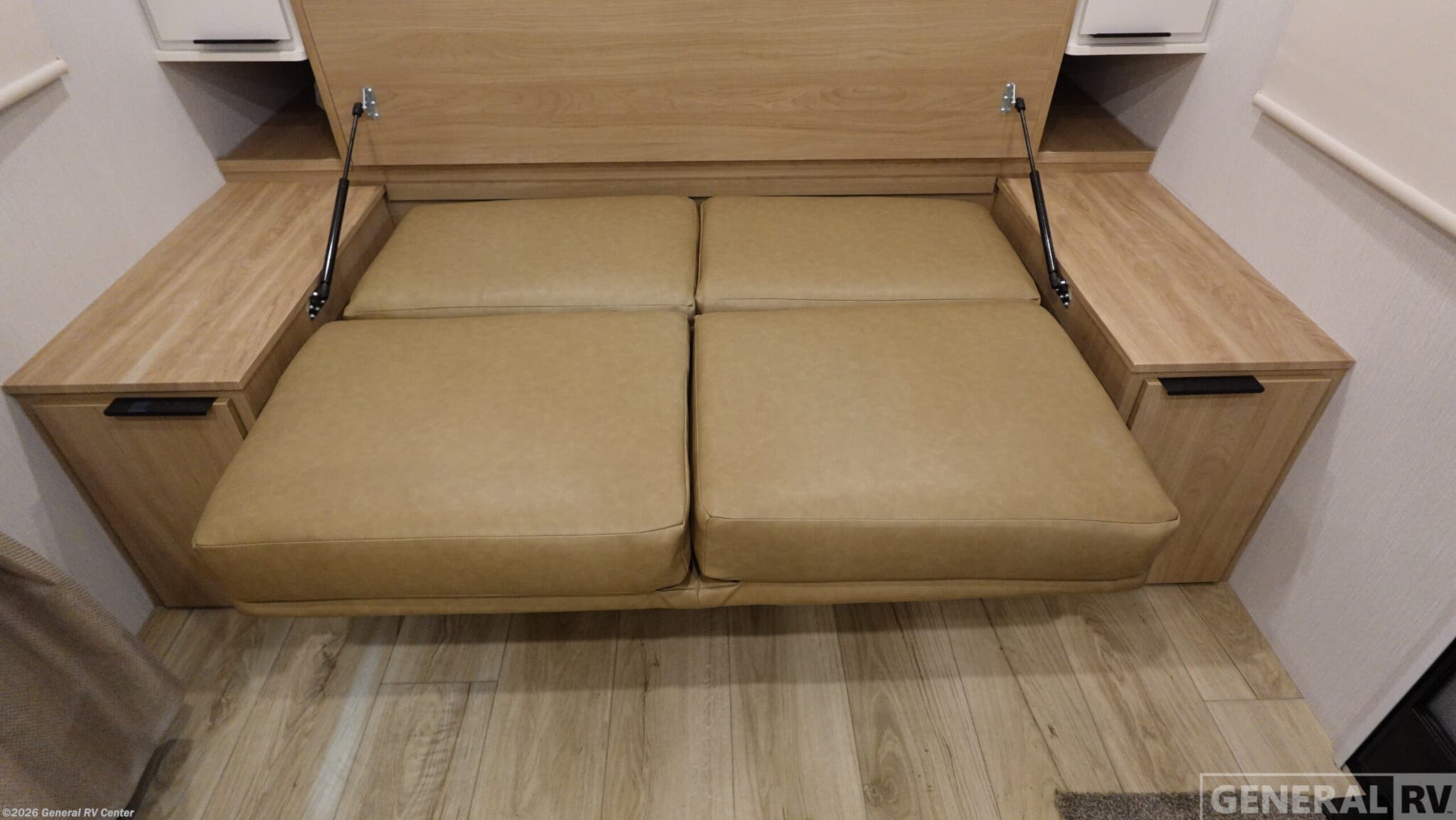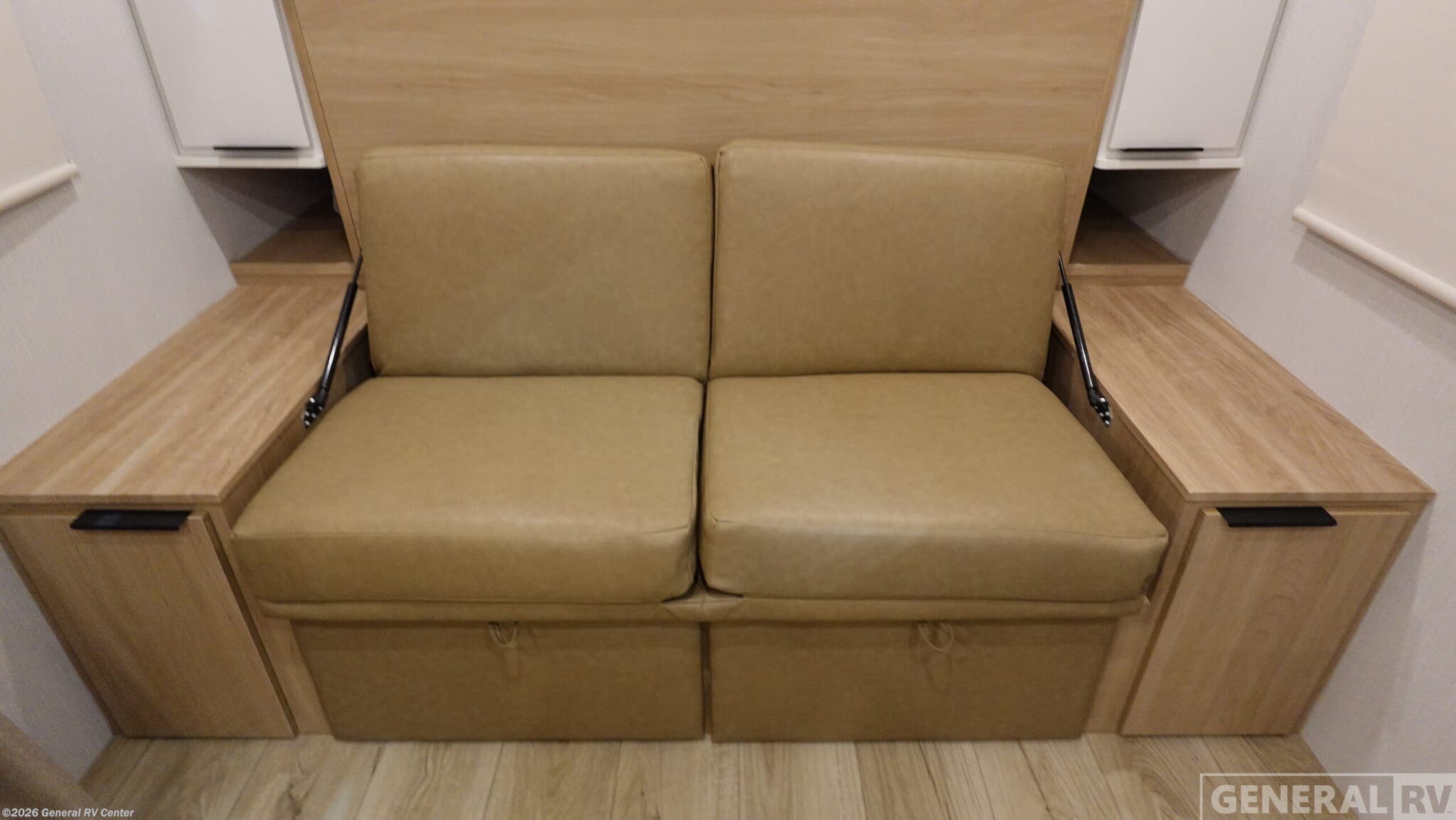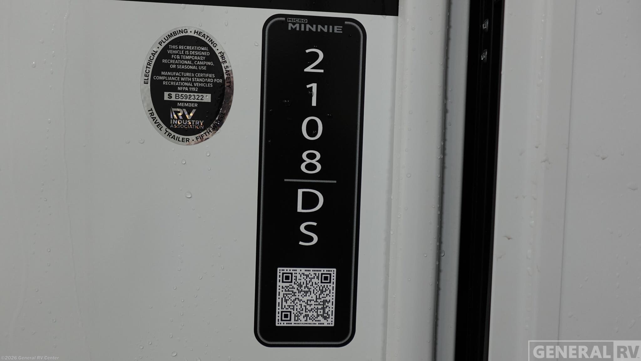 Winnebago Micro Minnie travel trailer 2108DS highlights: Front Murphy Bed Full Rear Bathroom 10 Cu. Ft. Refrigerator Privacy Curtain Dual Nightstands If you're looking for versatility, then you need this travel trailer! Depending on the time of day you enter will determine whether you see the Murphy bed or the sofa up front. A slide out 44" x 72" booth dinette can be used for dining, playing games, and sleeping space at night. The full rear bathroom is equipped with everything you will need to freshen up each morning and features a wardrobe for your clothing and linens, and a pocket door into the bath saves space in the main room. The Smart TV is conveniently located so you can watch your favorite shows from the sofa or Murphy bed as well as the dinette, plus the pantry offers a place to store your snacks and such for easy access. The cook in your bunch will love all the amenities to make meals including the handy flip-up counter for more prep space. Start out on your boundless journey in one of these Winnebago Micro Minnie travel trailers! Towing is made simple with the 7' width to keep your Micro Minnie in your rear-view mirror, and even though they are compact in size, they aren't lacking in features. Each one is built with an NXG frame and fiberglass sidewalls with Azdel Onboard composite panels for added durability, plus dual Dexter TORFLEX torsion axles for smooth towing. There are also Goodyear Wrangle tires, power stabilizer jacks, a fully walkable roof and many more exterior conveniences. A 200-watt solar panel and Winnebago all-in-one control panel will provide off-grid capabilities and let you stay in control of your trailer's functions. Inside, you'll enjoy the flush mount ceiling lights, full-overlay European-style cabinetry, and JBL premium sound interior speakers, plus there is a tankless water heater to ensure your comfort!