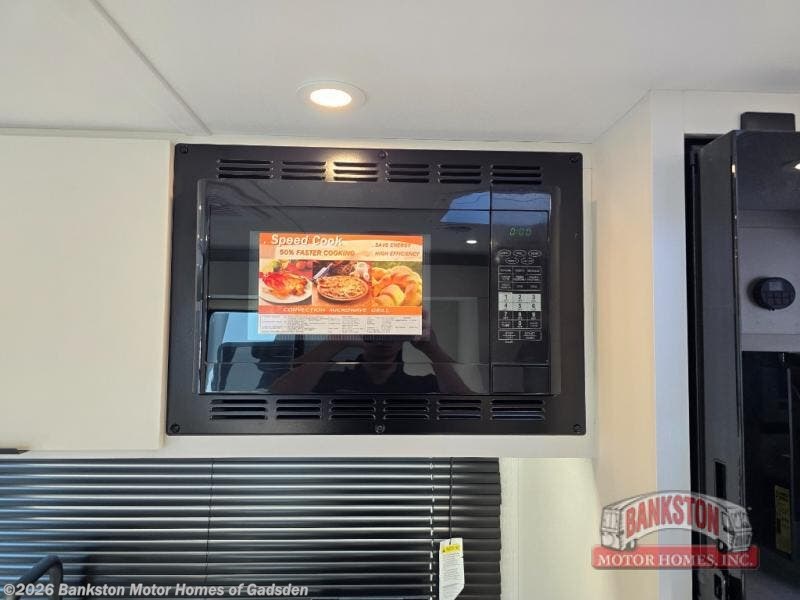 Pack your bags and head to the campground with this travel trailer! You will love all that it has to offer from the full rear bathroom to the front 60" x 74" RV queen-size bed with dual wardrobes on either side of the bed. The 44" x 72" booth dinette slide is not only a great place to enjoy your meals at or play card games, but it can also be transformed into an extra sleeping space if you want to bring along a guest. When you don't feel like making dinner, you can easily pop in some leftovers or a bag of popcorn into the convection microwave and relax while you watch a movie on the Smart TV!