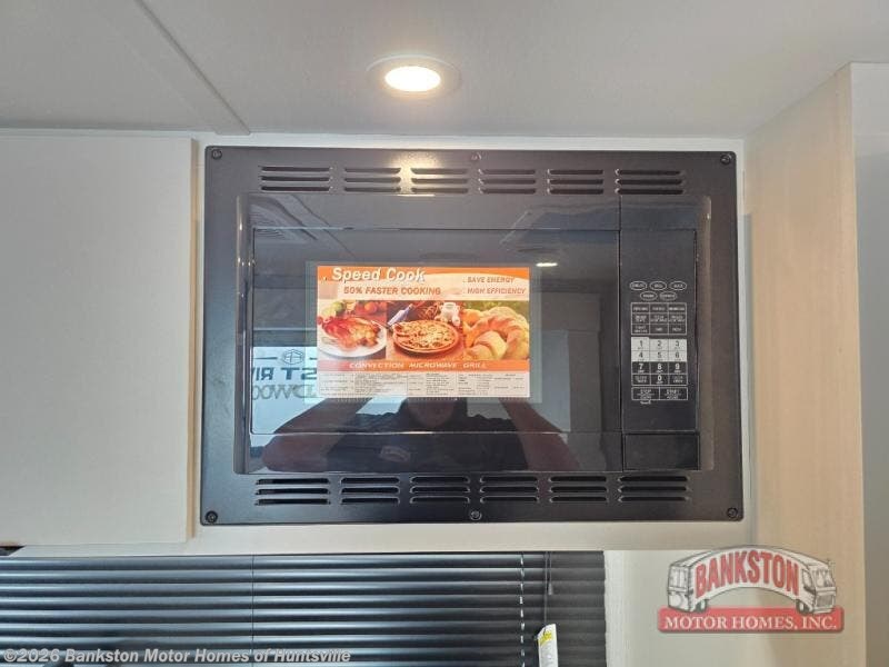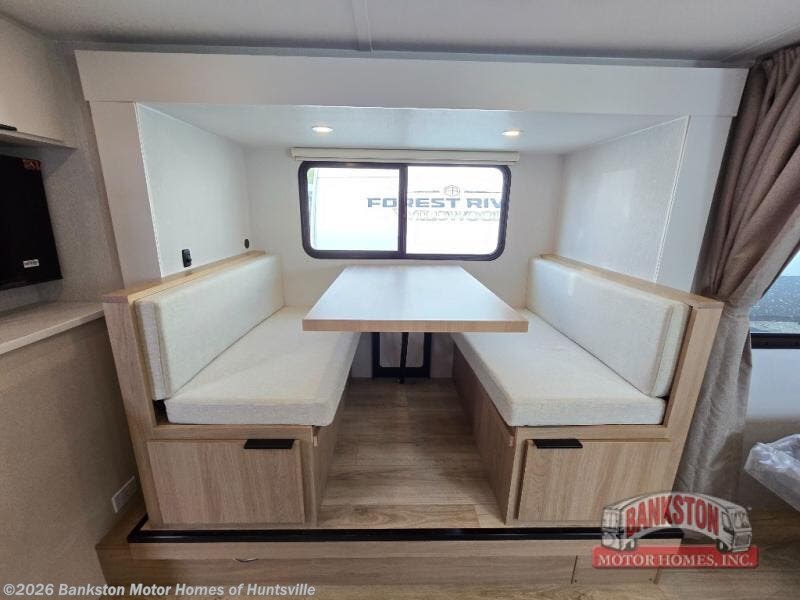 Pack your bags and head to the campground with this travel trailer! You will love all that it has to offer from the full rear bathroom to the front 60" x 74" RV queen-size bed with dual wardrobes on either side of the bed. The 44" x 72" booth dinette slide is not only a great place to enjoy your meals at or play card games, but it can also be transformed into an extra sleeping space if you want to bring along a guest. When you don't feel like making dinner, you can easily pop in some leftovers or a bag of popcorn into the convection microwave and relax while you watch a movie on the Smart TV!