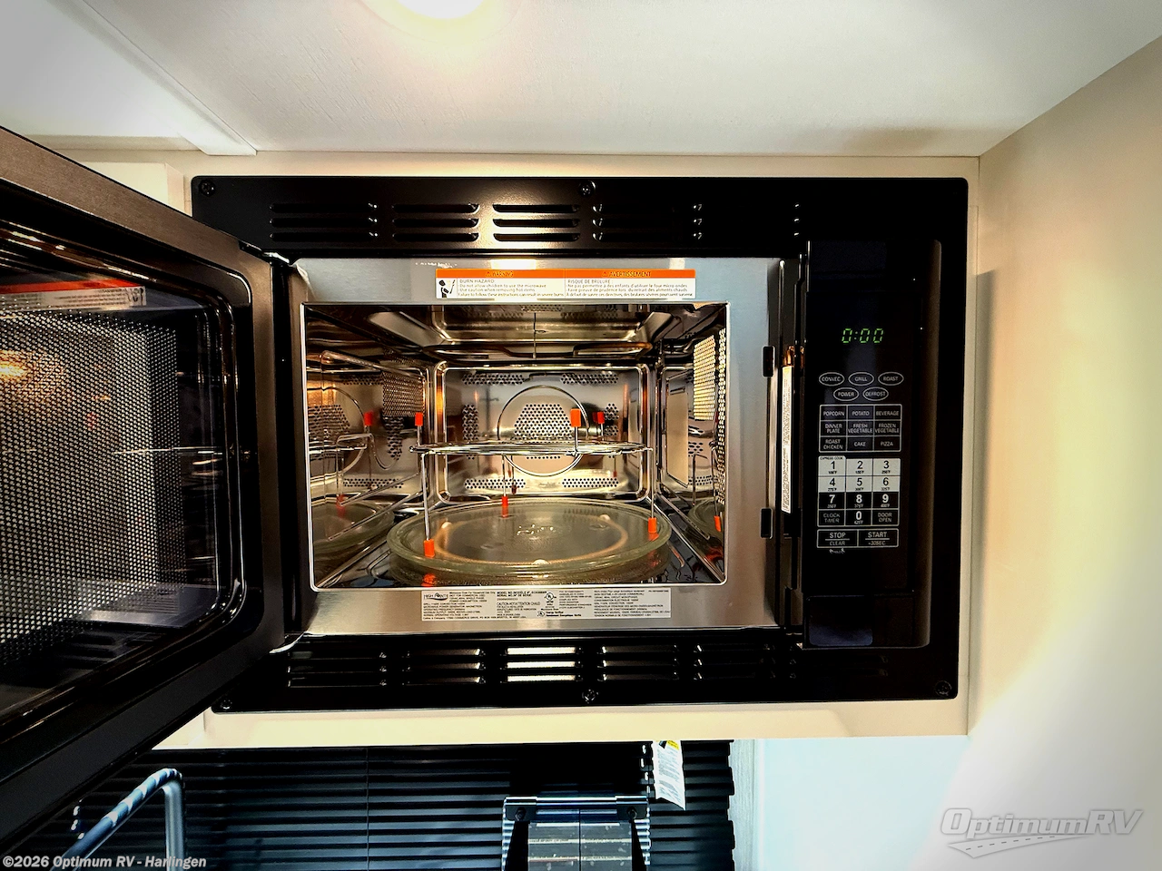 Pack your bags and head to the campground with this travel trailer! You will love all that it has to offer from the full rear bathroom to the front 60" x 74" RV queen-size bed with dual wardrobes on either side of the bed. The 44" x 72" booth dinette slide is not only a great place to enjoy your meals at or play card games, but it can also be transformed into an extra sleeping space if you want to bring along a guest. When you don't feel like making dinner, you can easily pop in some leftovers or a bag of popcorn into the convection microwave and relax while you watch a movie on the Smart TV!