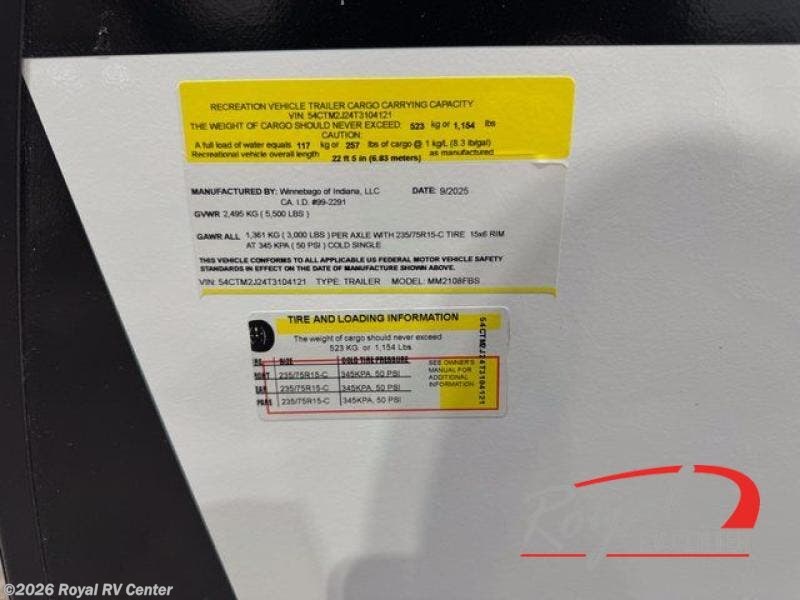 Request More Info on this 2026 Winnebago Micro Minnie 2108FBS Offered for sale by Royal RV Center