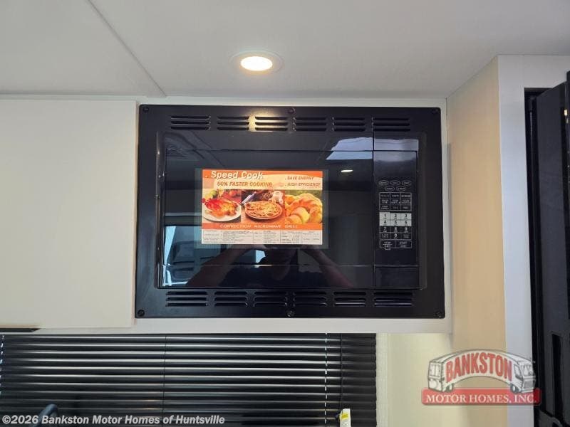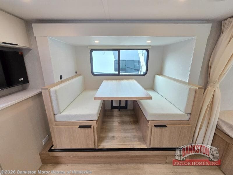 Come see just how accommodating this travel trailer can be! The two 32" x 74" twin beds up front have a nightstand in between them and a divider curtain to draw, plus they can convert into one 74" x 82" king-size bed. The 44" x 72" booth dinette slide can also convert into an extra sleeping space when you're not using it for meal time or playing games. Everyone can get squeaky clean in the full rear bathroom, and the wardrobe is a convenient place to store your linens and extra clothes. Grab a snack from the kitchen pantry or pop a bag of popcorn in the convection microwave then watch a movie on the Smart TV or head outdoors and relax underneath the power awning!