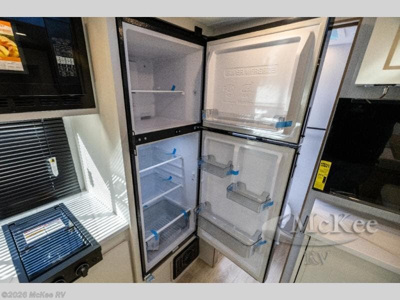 Come see just how accommodating this travel trailer can be! The two 32" x 74" twin beds up front have a nightstand in between them and a divider curtain to draw, plus they can convert into one 74" x 82" king-size bed. The 44" x 72" booth dinette slide can also convert into an extra sleeping space when you're not using it for meal time or playing games. Everyone can get squeaky clean in the full rear bathroom, and the wardrobe is a convenient place to store your linens and extra clothes. Grab a snack from the kitchen pantry or pop a bag of popcorn in the convection microwave then watch a movie on the Smart TV or head outdoors and relax underneath the power awning!