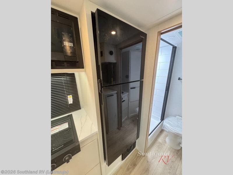 Come see just how accommodating this travel trailer can be! The two 32" x 74" twin beds up front have a nightstand in between them and a divider curtain to draw, plus they can convert into one 74" x 82" king-size bed. The 44" x 72" booth dinette slide can also convert into an extra sleeping space when you're not using it for meal time or playing games. Everyone can get squeaky clean in the full rear bathroom, and the wardrobe is a convenient place to store your linens and extra clothes. Grab a snack from the kitchen pantry or pop a bag of popcorn in the convection microwave then watch a movie on the Smart TV or head outdoors and relax underneath the power awning!