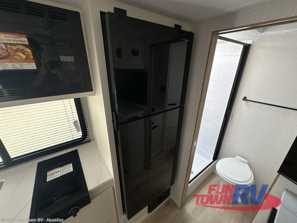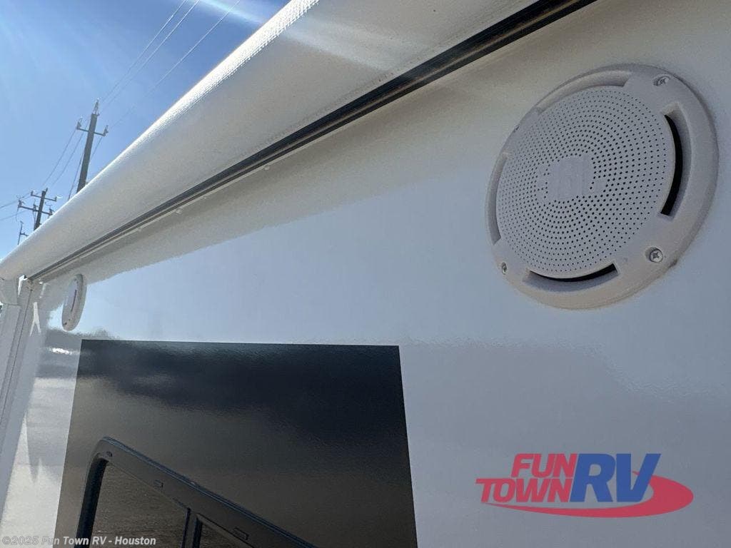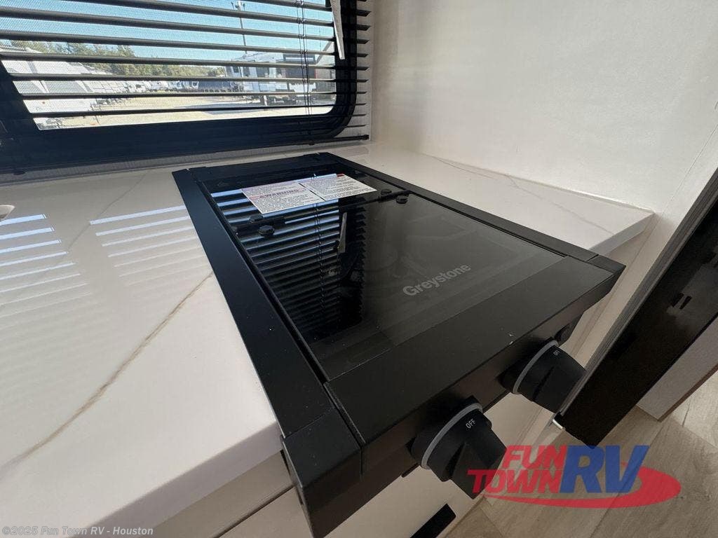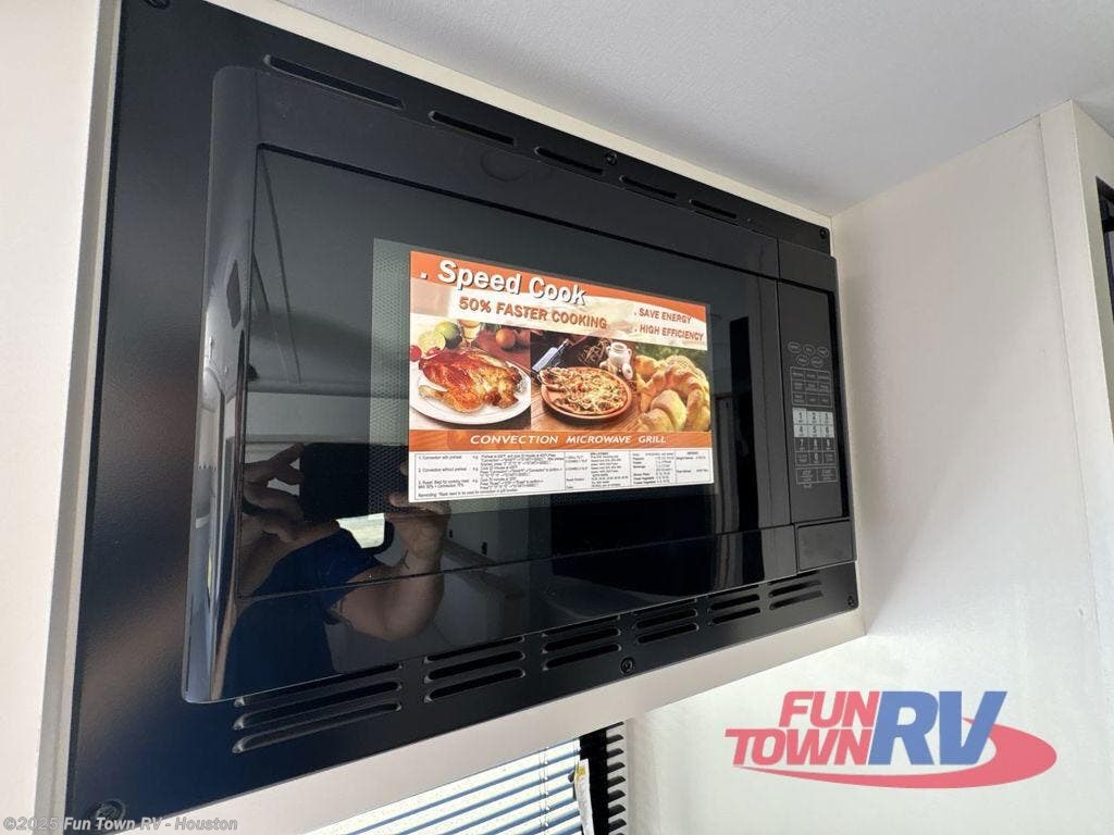 Come see just how accommodating this travel trailer can be! The two 32" x 74" twin beds up front have a nightstand in between them and a divider curtain to draw, plus they can convert into one 74" x 82" king-size bed. The 44" x 72" booth dinette slide can also convert into an extra sleeping space when you're not using it for meal time or playing games. Everyone can get squeaky clean in the full rear bathroom, and the wardrobe is a convenient place to store your linens and extra clothes. Grab a snack from the kitchen pantry or pop a bag of popcorn in the convection microwave then watch a movie on the Smart TV or head outdoors and relax underneath the power awning!