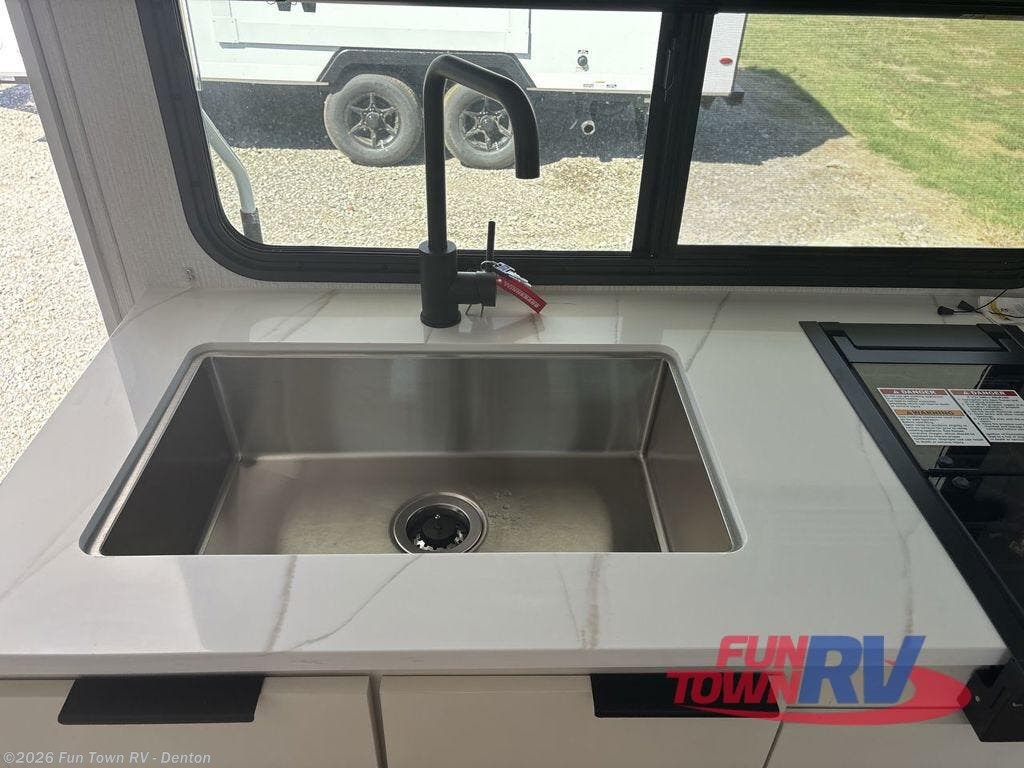 Come see just how accommodating this travel trailer can be! The two 32" x 74" twin beds up front have a nightstand in between them and a divider curtain to draw, plus they can convert into one 74" x 82" king-size bed. The 44" x 72" booth dinette slide can also convert into an extra sleeping space when you're not using it for meal time or playing games. Everyone can get squeaky clean in the full rear bathroom, and the wardrobe is a convenient place to store your linens and extra clothes. Grab a snack from the kitchen pantry or pop a bag of popcorn in the convection microwave then watch a movie on the Smart TV or head outdoors and relax underneath the power awning!