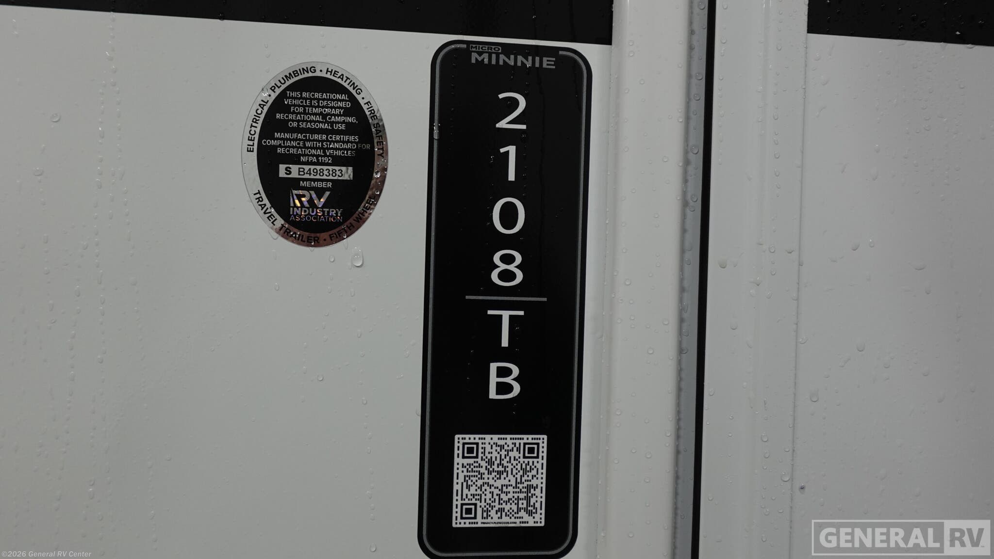 Experience the perfect blend of comfort and convenience with the 2026 Winnebago Micro Minnie 2108TB. This compact yet spacious RV is designed for adventure seekers who crave the freedom of the open road without sacrificing the comforts of home. With a length of just over 22 feet, it's easy to maneuver while still offering ample living space. The front bedroom features versatile sleeping arrangements with two twin beds that can convert into a king, ensuring a restful night’s sleep after a day of exploration. The center kitchen and living area are thoughtfully arranged to maximize functionality. Enjoy cooking your favorite meals on the three-burner cooktop and savor them at the cozy dinette, which can also convert into additional sleeping space if needed. The full-size electric refrigerator ensures you have plenty of space for all your culinary essentials. The rear bath offers privacy and convenience with a shower curtain, wardrobe storage, and a pocket door. Plus, the 15 ft. powered retractable awning extends your living space to the great outdoors, perfect for enjoying a morning coffee or evening relaxation. Whether you're embarking on a weekend getaway or a cross-country journey, the Micro Minnie 2108TB is equipped to meet your needs with features like convection cooking, a flip-up counter for added prep space, and ample storage throughout. Visit your nearest General RV dealership to explore this model and start planning your next adventure today!