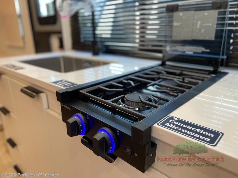 Come see just how accommodating this travel trailer can be! The two 32" x 74" twin beds up front have a nightstand in between them and a divider curtain to draw, plus they can convert into one 74" x 82" king-size bed. The 44" x 72" booth dinette slide can also convert into an extra sleeping space when you're not using it for mealtime or playing games. Everyone can get squeaky clean in the full rear bathroom, and the wardrobe is a convenient place to store your linens and extra clothes. Grab a snack from the kitchen pantry or pop a bag of popcorn in the convection microwave then watch a movie on the Smart TV or head outdoors and relax underneath the power awning!