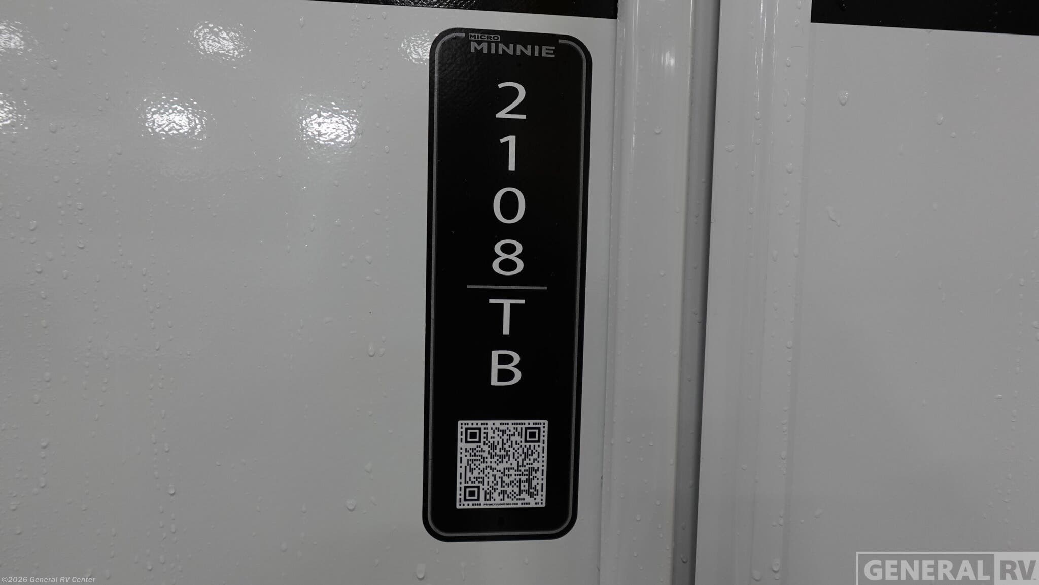 **Winnebago Micro Minnie travel trailer 2108TB highlights:** * Two Twin Beds with King Conversion * Full Rear Bathroom * USB Charging Ports * 10 Cu. Ft. 12V Refrigerator Come see just how accommodating this travel trailer can be! The two 32" x 74" twin beds up front have a nightstand in between them and a divider curtain to draw, plus they can convert into one 74" x 82" king-size bed. The 44" x 72" booth dinette slide can also convert into an extra sleeping space when you're not using it for meal time or playing games. Everyone can get squeaky clean in the full rear bathroom, and the wardrobe is a convenient place to store your linens and extra clothes. Grab a snack from the kitchen pantry or pop a bag of popcorn in the convection microwave then watch a movie on the Smart TV or head outdoors and relax underneath the power awning! Start out on your boundless journey in one of these Winnebago Micro Minnie travel trailers! Towing is made simple with the 7' width to keep your Micro Minnie in your rear-view mirror. They don't lack in features either although they are compact in size. The spacious galley including a sink, refrigerator, a cooktop, and even a convection microwave oven allows you to cook without compromise. You will not only enjoy the entertainment found indoors with a Smart TV, a JBL premium sound system and Aura Cube high performance mechless media center, but outdoors you will also enjoy the JBL premium speakers and a power awning with LED lighting. Each model also comes with flexible exterior storage to make packing quick and easy, a 200-watt solar panel for off-grid camping, and Dexter TORFLEX torsion stub axles for smooth towing!