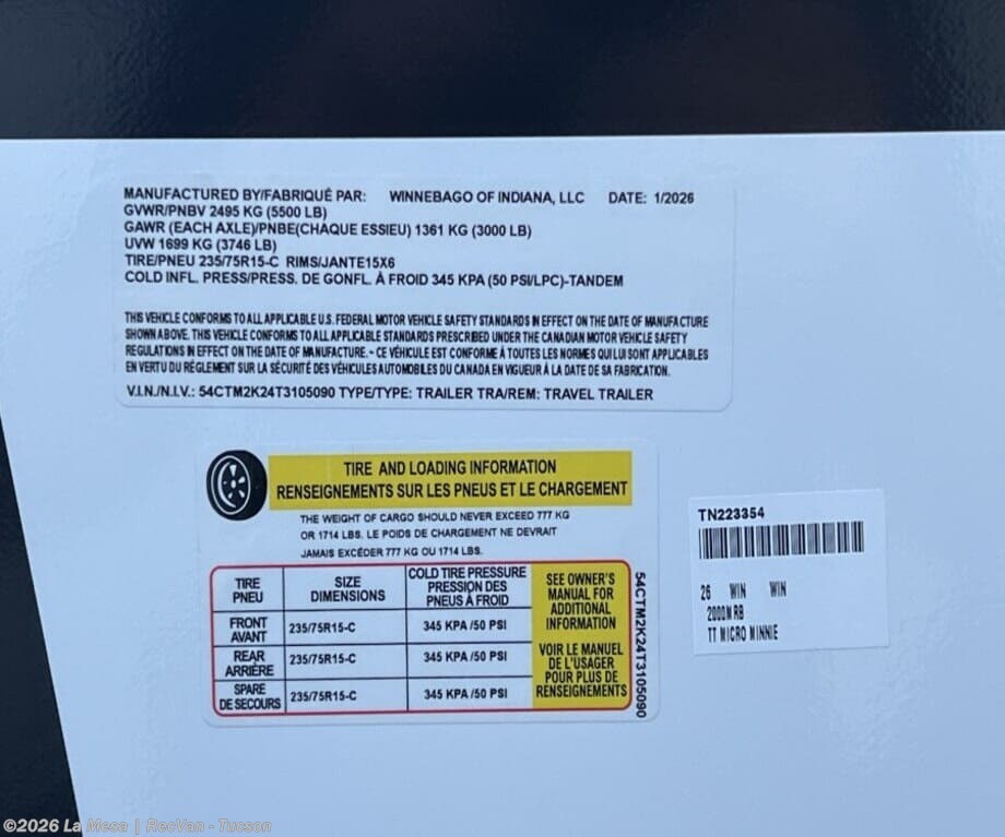 Looking to buy a 2026 Winnebago Travel Trailer RV?