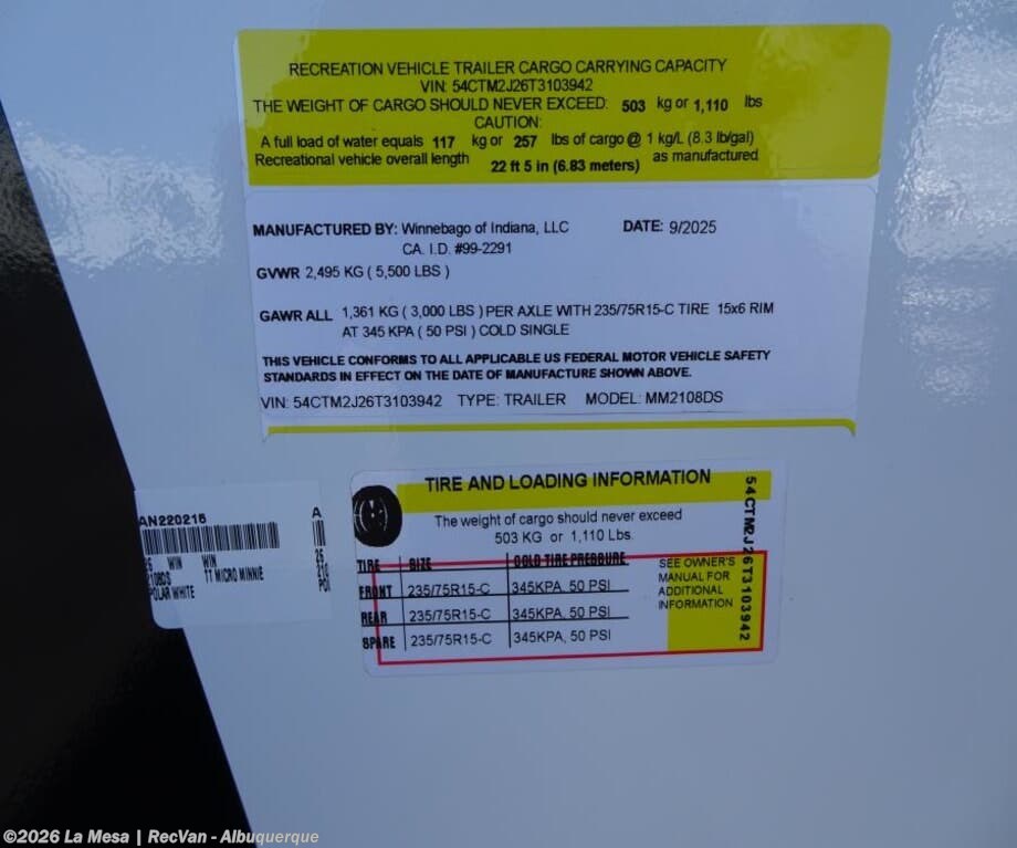 Request More Info on this 2026 Winnebago MICRO MINNIE-TT 2108DS Offered for sale by La Mesa | RecVan - Albuquerque