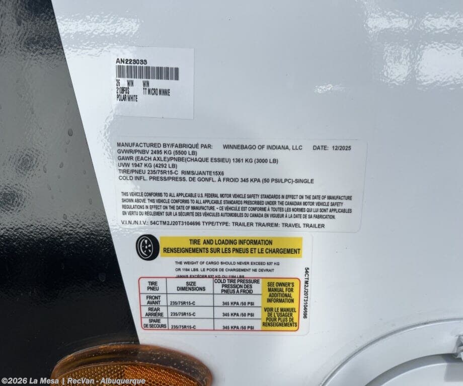 Request More Info on this 2026 Winnebago MICRO MINNIE-TT 2108FBS Offered for sale by La Mesa | RecVan - Albuquerque