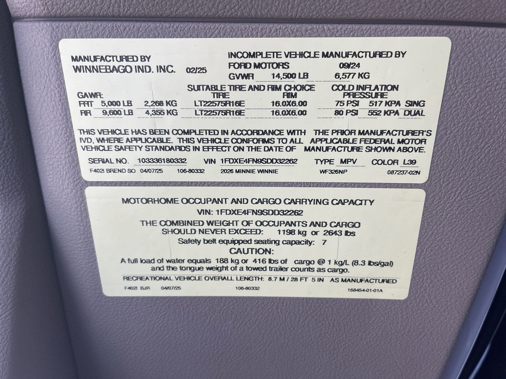 The 2025 Winnebago Minnie Winnie NPF 26NP is a limited-edition Class C motorhome that blends comfort, functionality, and a tribute to America's national parks. Built on the Ford E450 chassis and powered by a 7.3L V8 engine delivering 350 horsepower, it ensures a smooth and reliable driving experience. Measuring 28 feet 5 inches in length, the 26NP features two slide-outs, expanding the living space for enhanced comfort.