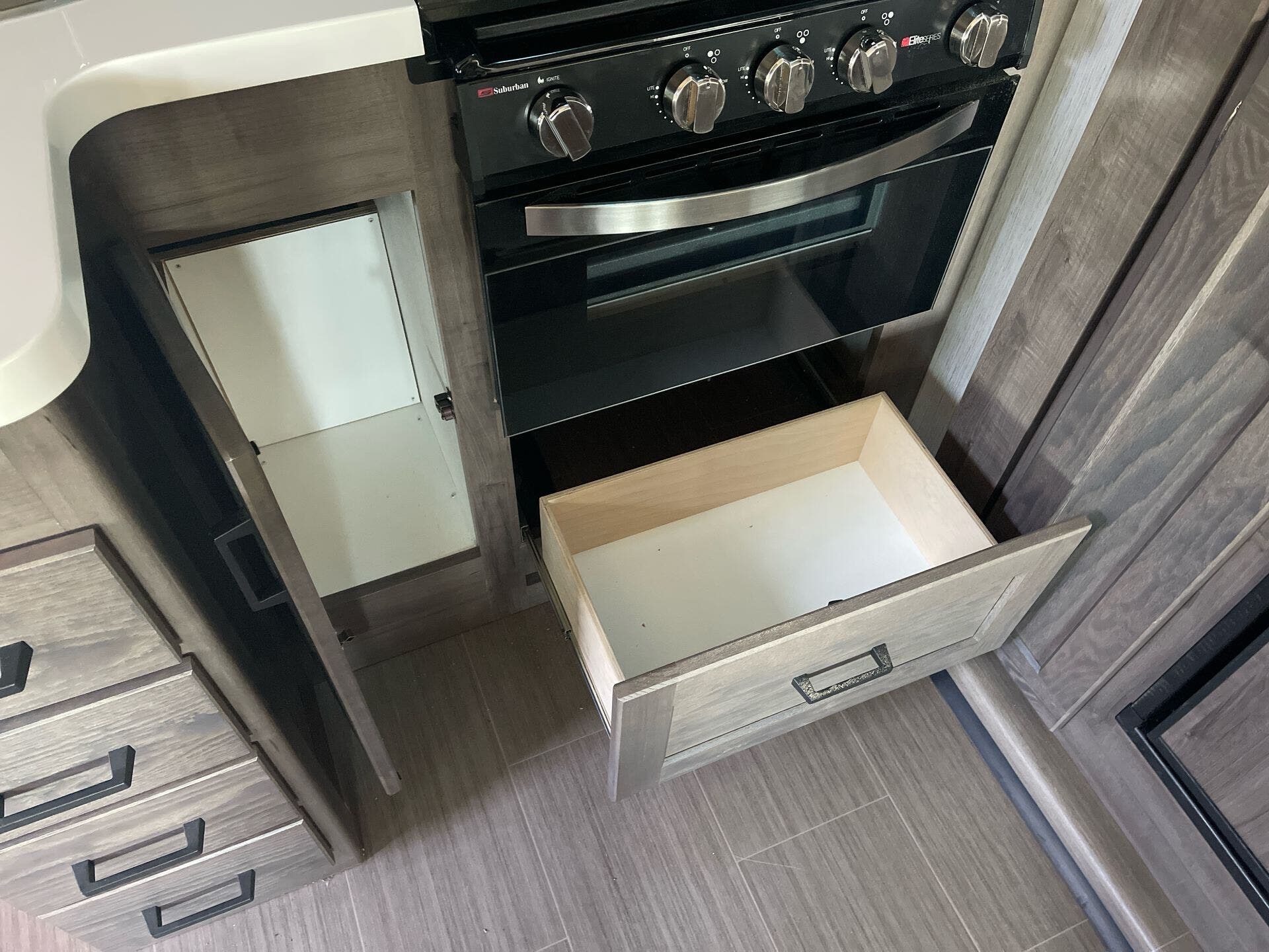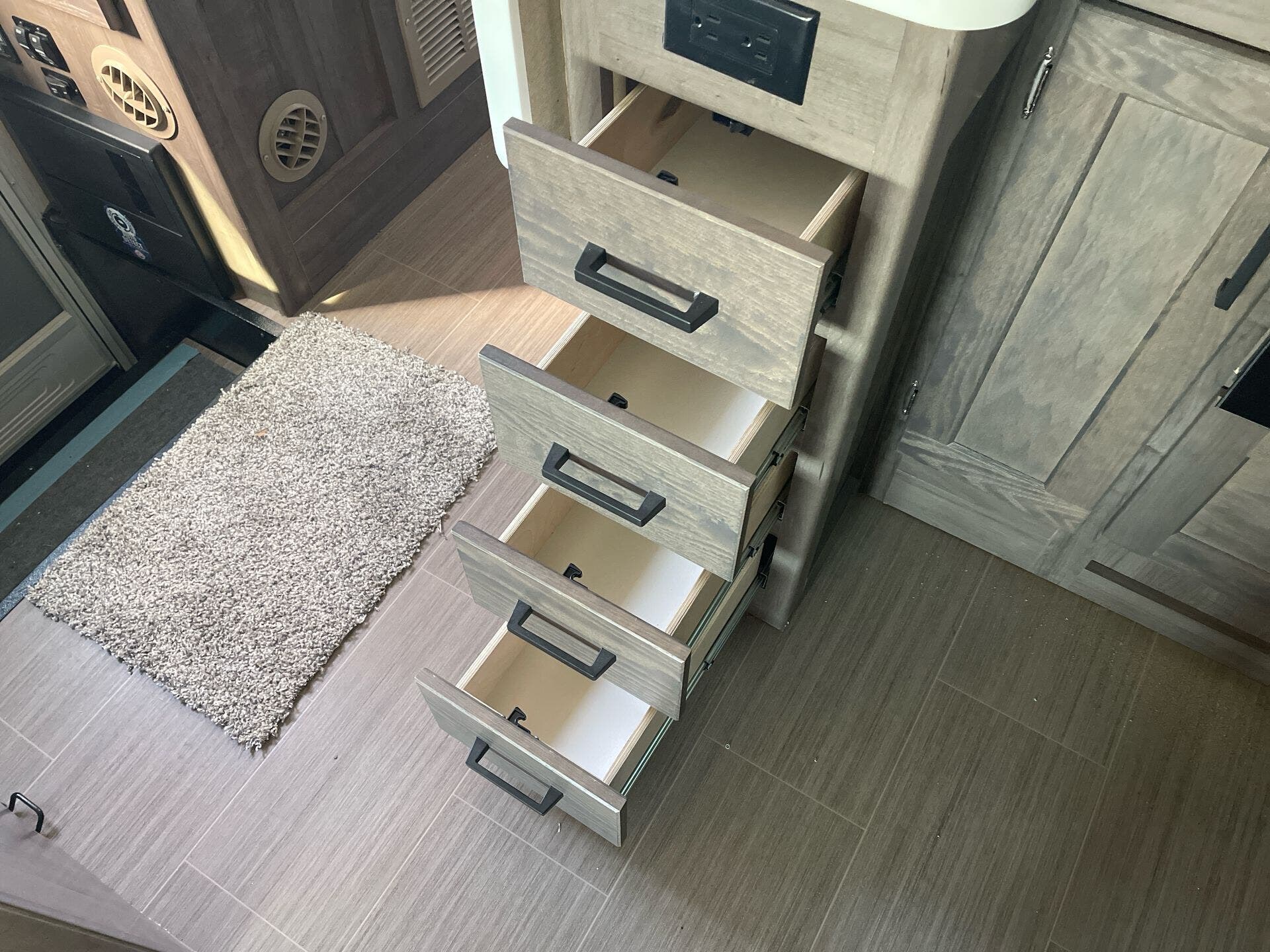 Awning, Backup Monitor, Ladder, Leveling Jacks, Power Roof Vent, Skylight, Slideout, Slide-out Awning -