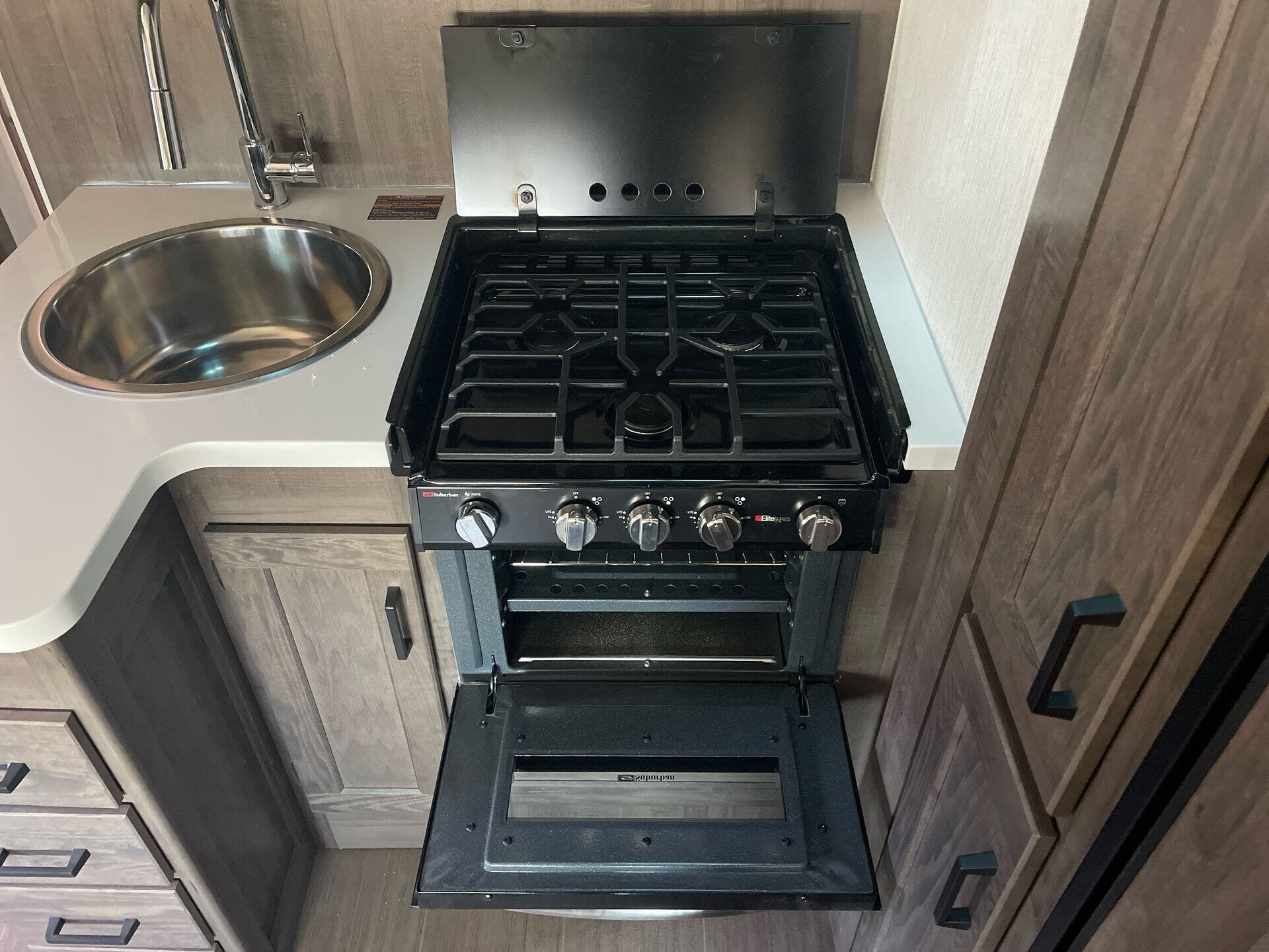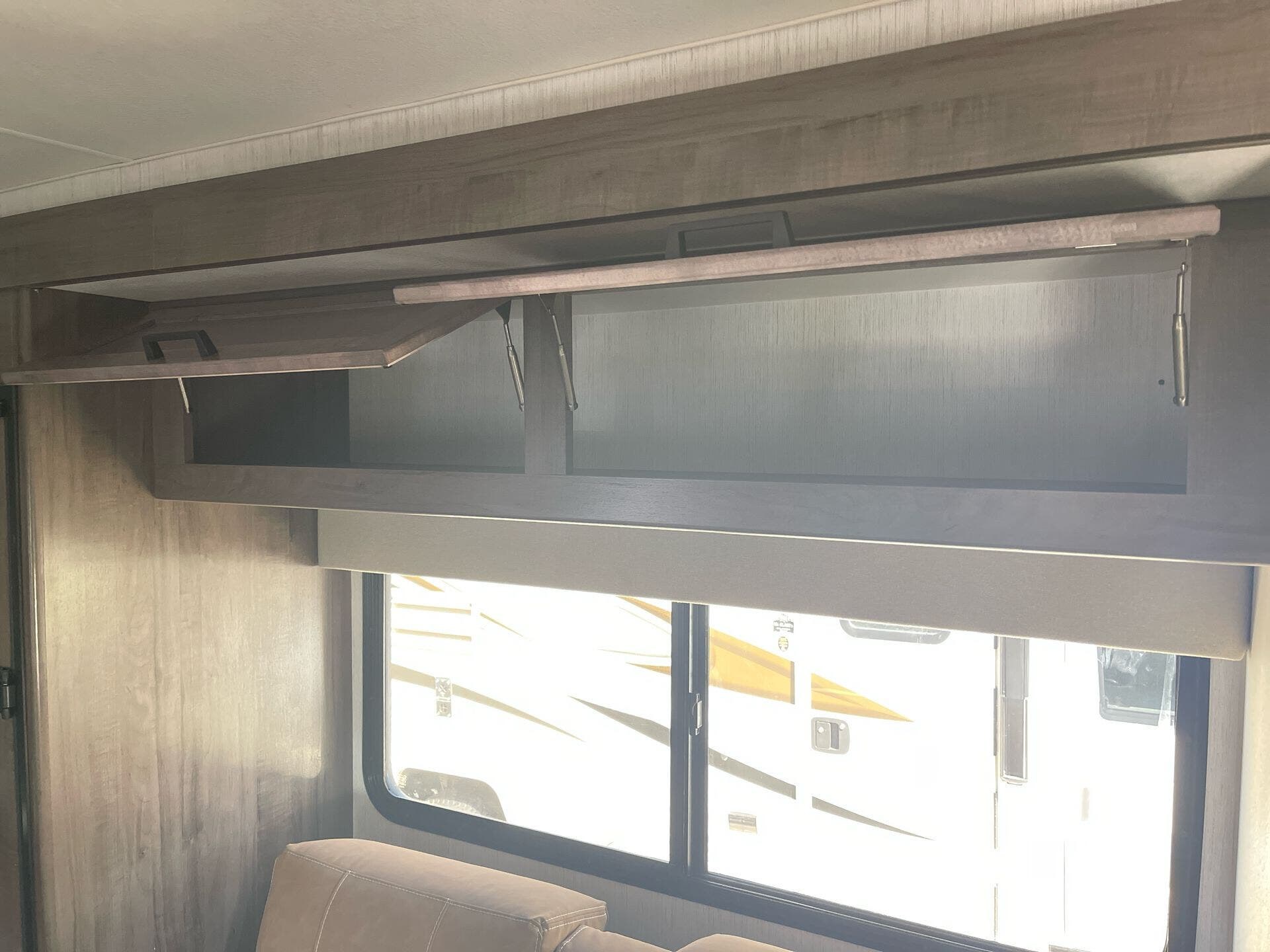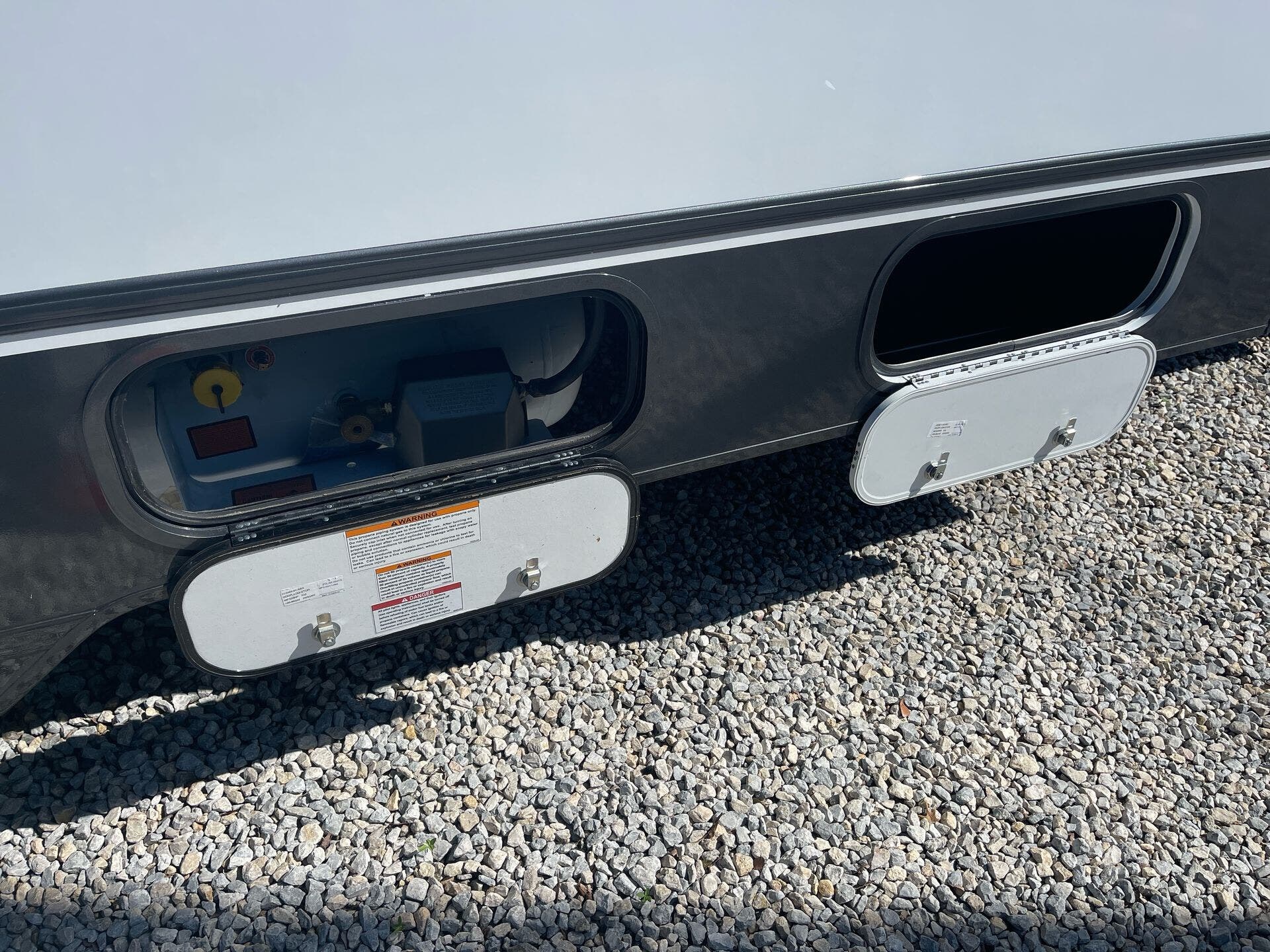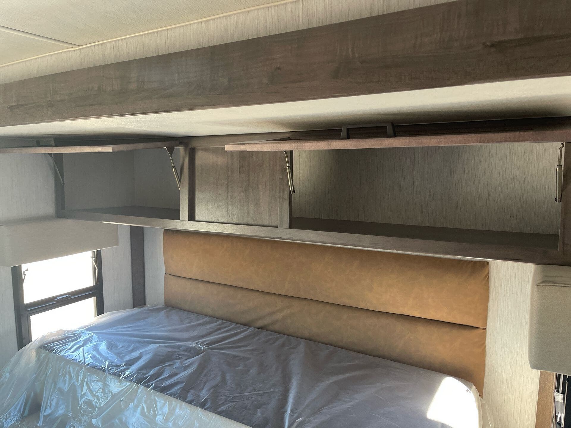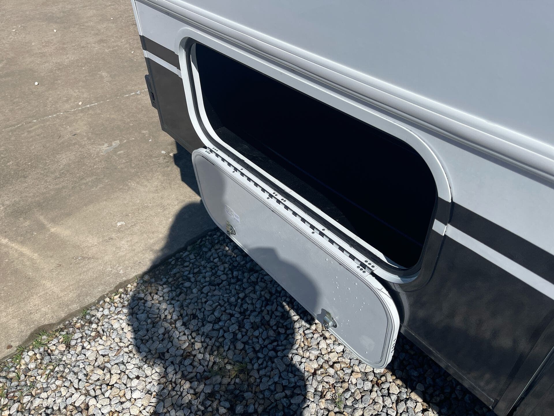 Additional amenities include a 17-foot power awning with LED lighting, dual 13,500 BTU air conditioners, a 30,000 BTU furnace, and a 4,000-watt RVMP Microquiet generator, providing comfort and convenience for various travel needs. The 26NP also features National Parks inspired exterior paint and interior décor, Merlin solar panels, and exclusive National Parks camping perks, making it a unique and enjoyable RV experience.