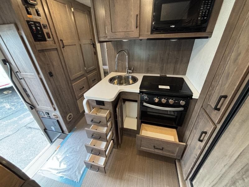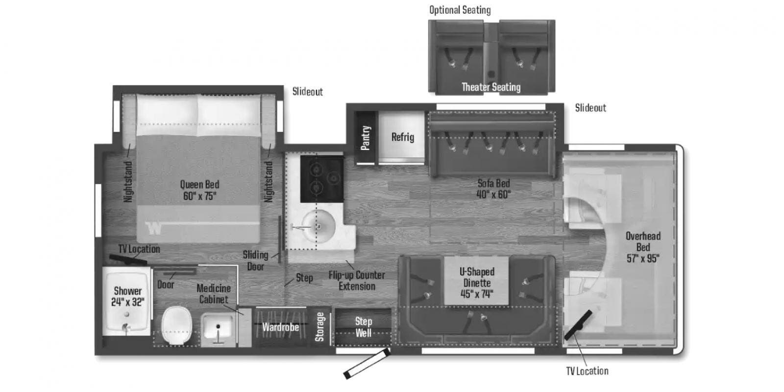 Features Include: 350 HP, 210-Amp Alternator, 4-Wheel ABS, Valve Extenders, Hill Start Assist, Traction Control, Distance Alert, Driver Monitoring, Remote Keyless Entry, Running Boards, Power Door Locks, Overhead Bed, Sunvisors, Rear Color Camera, Apple CarPlay, Android Auto, SiriusXM, Bluetooth, Auxiliary Start, PowerTilt Steering, Tinted Glass, Dinette Booth, Galley Mini Blinds, Stainless Steel Sink, 3-Burner Cooktop, Gas Oven, Systems Center, USB Chargers, TV Hookup, Entertainment System, Headboard, Nightstands, Wardrobe, Foam Mattress, Mattress Covers, Storage, Mini Blinds, Medicine Cabinet, Vanity Sink, Flexible Showerhead, Skylight, Foot Pedal Toilet, 4.0 Gas Generator, 30-Amp Service Cord, 1000w Inverter, 15k AC, 6-Gal DSI Hot Water, Aluminum Framework, Roof Access Ladder