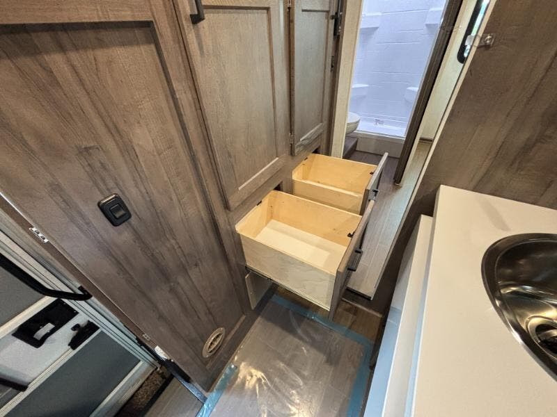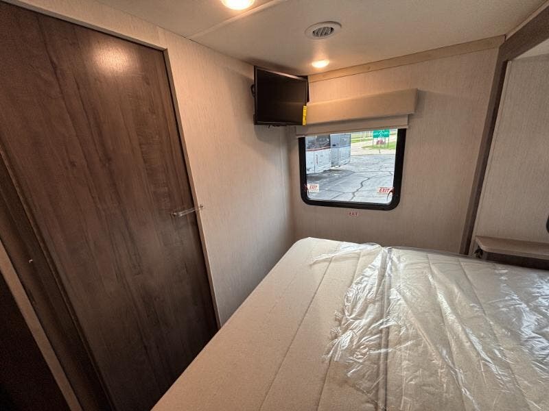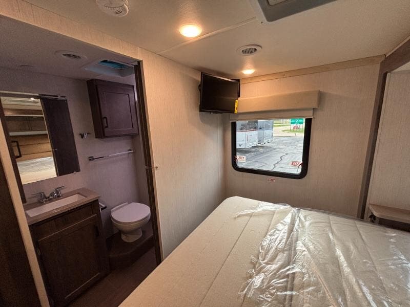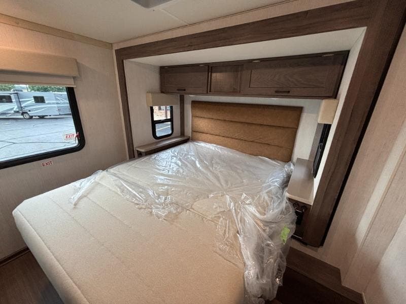 The 2026 Winnebago Minnie Winnie 26T is a brand-new Class C RV that combines comfort, functionality, and modern technology, making it an ideal choice for both short getaways and extended road trips. Built on a robust Ford E-450 chassis, this RV is powered by a 7.3L V8 premium gasoline engine, delivering 350 horsepower. The TorqShift 6-speed transmission with overdrive ensures smooth and efficient driving, while the 210-amp alternator and electronic stability control enhance performance and safety. The exterior of the Minnie Winnie is designed with practicality and style in mind. It features stainless steel wheel liners, valve extenders, and a 7500-pound hitch with a 7-pin connector, making it ready for towing. The aluminum framework and molded fiberglass front cap contribute to its durability, while the premium hi-gloss exterior adds a touch of elegance. A roof access ladder and lighted trunk compartment provide additional convenience. Safety and driver assistance are prioritized with a suite of features, including: - Auto Headlight Control - Auto High Beam Control - Hill Start Assist - Traction Control - Adaptive Cruise Control - Automatic Emergency Braking - Distance Alert - Driver Monitoring - Forward Collision Warning - Lane Departure Warning - Post-Collision Warning - Tire Pressure Monitoring Inside the cab, comfort and technology are seamlessly integrated. The cab features remote keyless entry, running boards, power door locks, and slide recline lumbar seats. The 8.95-inch multi-function touchscreen supports Apple CarPlay, Android Auto, SiriusXM, and Bluetooth, ensuring connectivity on the go. Additional features include: - Remote Defrost Camera Side-Mirrors - Rear Color Camera - Auxiliary Start - PowerTilt Steering - Cruise Control The living spaces in the Minnie Winnie are designed for relaxation and convenience. The power awning with LED lighting and porch light indoor switch create a welcoming outdoor area. Inside, vinyl flooring, tinted glass, and blackout roller shades provide comfort and privacy. The sofa sleeper offers additional sleeping space. The dining area includes a dinette booth with a child seat tether anchor, galley mini blinds, and a Corian solid surface countertop. The kitchen is equipped with a stainless steel sink, a choice of a 6.3cf or 8cf refrigerator, a 3-burner cooktop, a gas oven, a vented range hood with light, and a microwave oven with touch control. Entertainment and electronics are well-catered for with a systems center, LP CO and smoke detectors, USB chargers, TV hookup, digital amplified HDTV antenna, and an entertainment system featuring a 32-inch HDTV and DVD player. Sleeping accommodations are versatile and comfortable, with options for a double or queen bed, foam mattress and cover, nightstands, wardrobe, and a 24-inch HDTV. Bunk beds with foam mattresses and storage are also available, along with privacy curtains for added seclusion. The bathroom is equipped with mini blinds, a medicine cabinet, a vanity sink, a flexible showerhead, a skylight, a foot pedal toilet, and a power roof vent, ensuring a comfortable and functional space. Mechanical features include two deep cycle group 24 batteries, automatic battery charge control, a battery disconnect switch, a 4.0 gas generator, a 30-amp service cord, a 55-amp converter charger, a 1000w inverter, a 30k furnace, a 15k AC, a 6-gallon DSI hot water system, and a black tank flush system. Overall, the 2026 Winnebago Minnie Winnie 26T is a well-equipped and thoughtfully designed RV that offers a perfect blend of comfort, safety, and modern amenities, making it an excellent choice for any adventure. ???