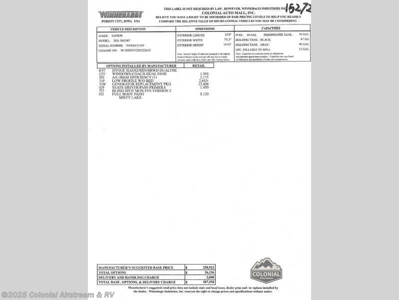 Request More Info on this 2026 Winnebago Navion 24T Offered for sale by Colonial Airstream & RV