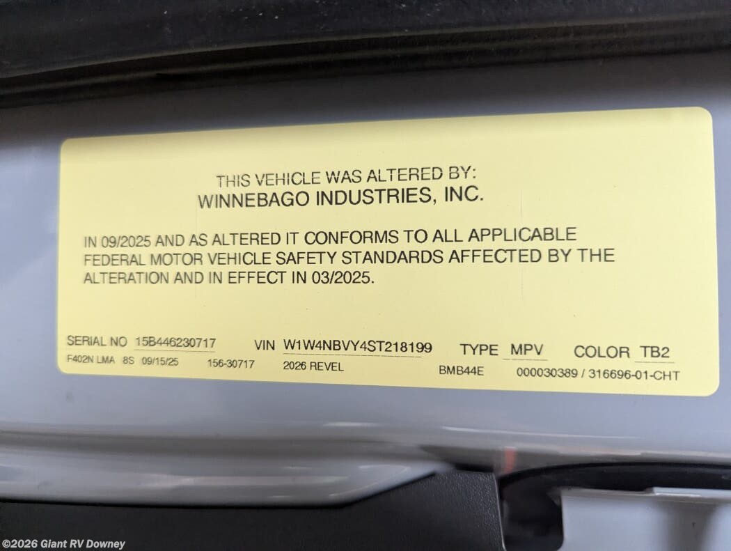 Request More Info on this 2026 Winnebago Revel 44E Offered for sale by Giant RV