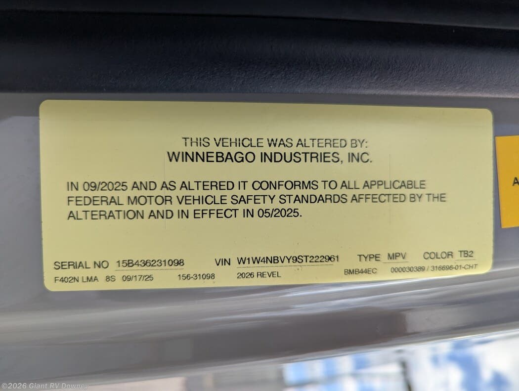 Request More Info on this 2026 Winnebago Revel 44E Offered for sale by Giant RV