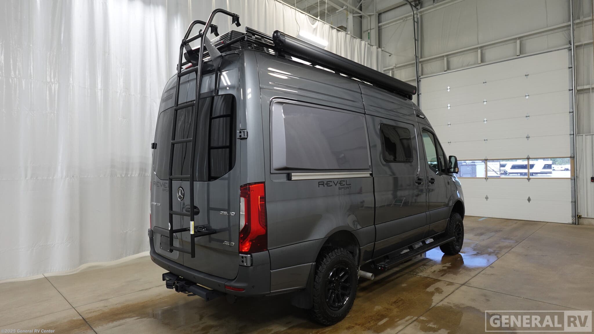 Adventure is just around the corner with this camper van! Once you arrive at your destination, you can make a quick lunch on the single induction cooktop that is stored in a drawer so you can have more counter space when you need it. The swivel cab seats and bench seat with a removable pedestal table provide a place to enjoy your meal at before you head outdoors. An all-in-one gear closet and wet bath will let you freshen up when you return, and the power lift bed with a gear garage below will provide a great night's rest. And if you're needing additional sleeping space, just choose the optional front cab air mattress! Go off-grid and off the beaten path with the Revel Sport Class B diesel motorhome by Winnebago. There is a 5kWh EcoFlow battery, 210-watts of solar power, plus a 5-in-1 Winnebago x EcoFlow Power Hub Pro with a 3,600-watt inverter, solar charger and more features to keep you powered up! This camper van sits on the durable Mercedes-Benz AWD sprinter chassis with a 2.0L high-output turbo-diesel engine. You will also find a MBUX touchscreen multimedia infotainment system, heated cab seats, plus added safety features, such as active braking assist and blind spot assist. The interior of the Revel Sport is outfitted with heavy duty vinyl flooring throughout to withstand your adventrous lifestyle, and there are RAM Tough-Track mounts throughout to keep your gear secure. Additional features include a hydronic heating system, aluminum running boards with ground effect lighting, a 5,000 lb. trailer hitch, and so much more!