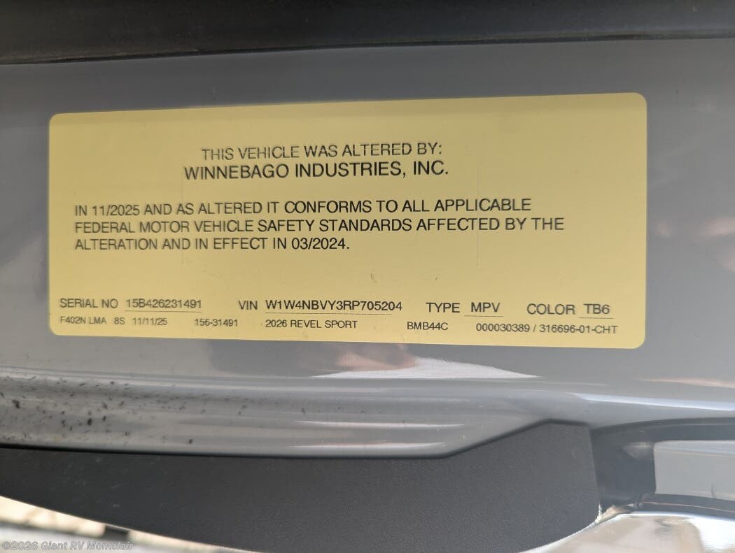 Request More Info on this 2026 Winnebago Revel Sport 44C Offered for sale by Giant RV