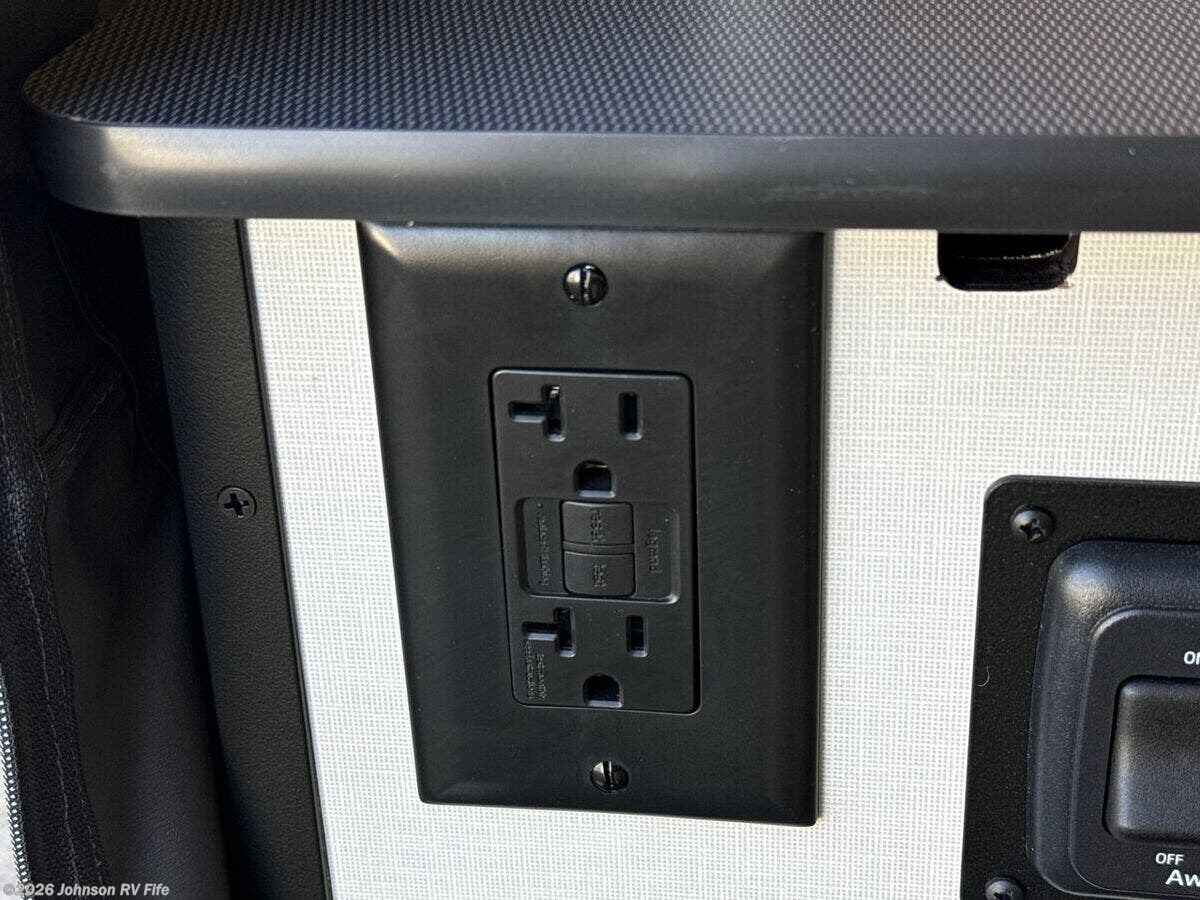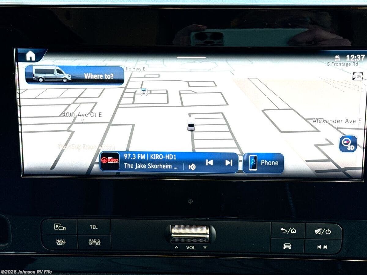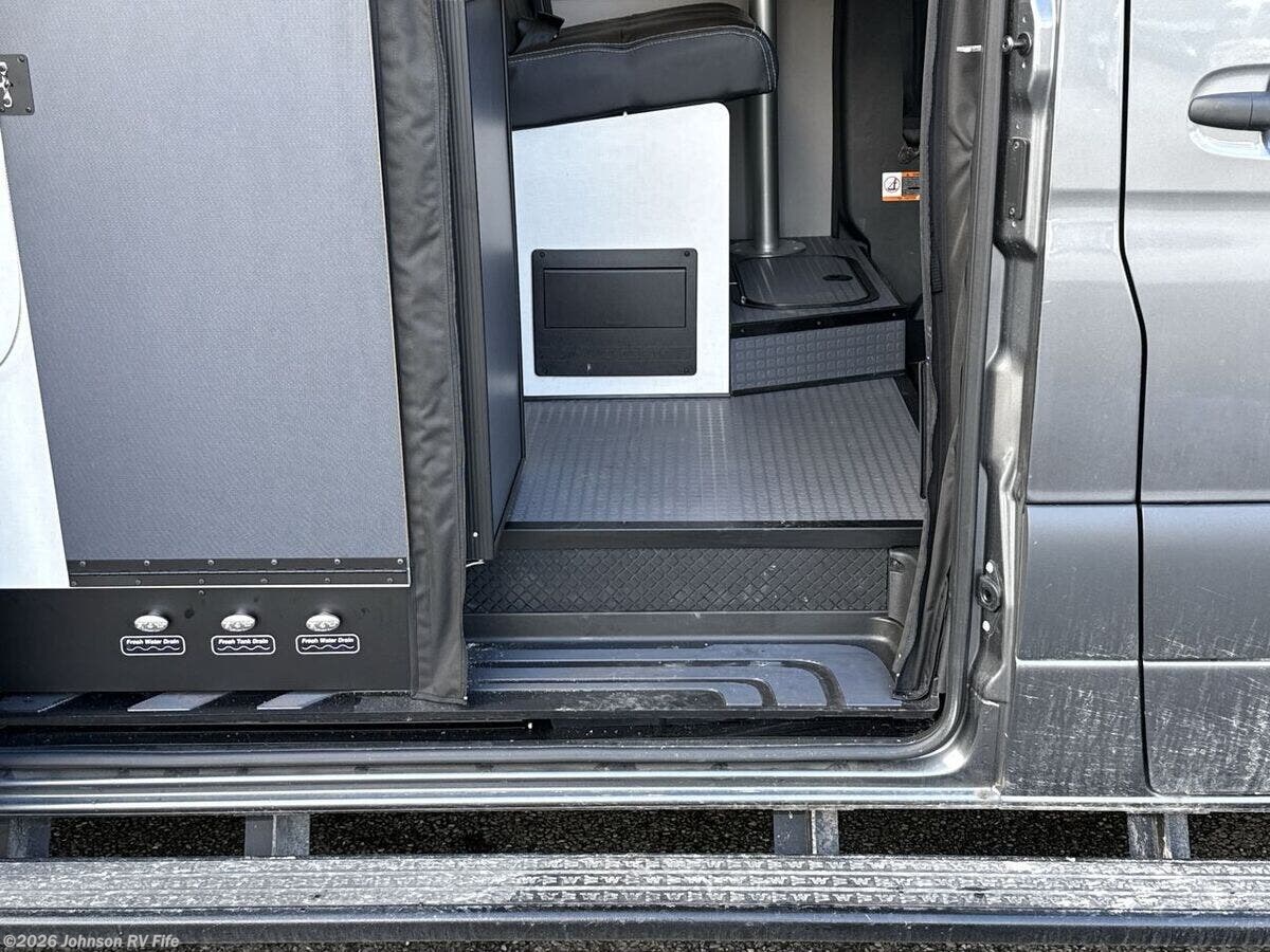 Features Include: 220-Amp Alternator, 4-Wheel ABS Brakes, Spare Tire, Rear Mud Guards, Blind Spot Assist, Traffic Sign Assist, Power Windows, Sunvisors, 12v Powerpoints, Navigation, WiFi Hotspot, Rear Camera, Pet Leash Attachment, Porch Light, 75-inch High Ceiling, Cassette Shades, Lounge Seat, Removable Table, Pantry, Stainless Steel Sink, Spice Rack, L-Track Tie Downs, Bi-fold Door, 31x26-inch Wet Bath, Mirror, Shower Wall Surround, Dual Control Faucet, Flexible Showerhead, 5kWh EcoFlow Battery, 210w Solar, Multi-zone Heating, 10-foot Sewer Hose, Luggage Rack
