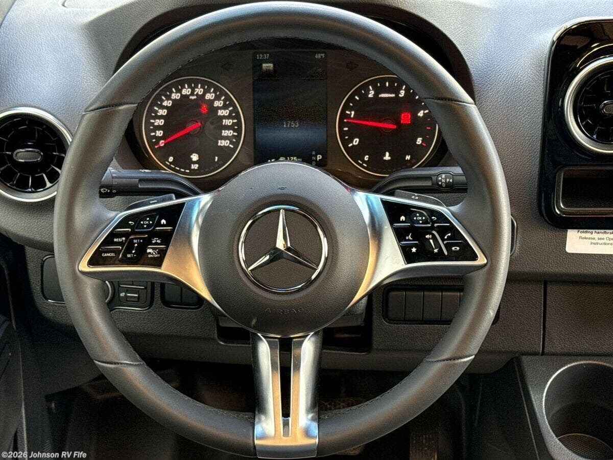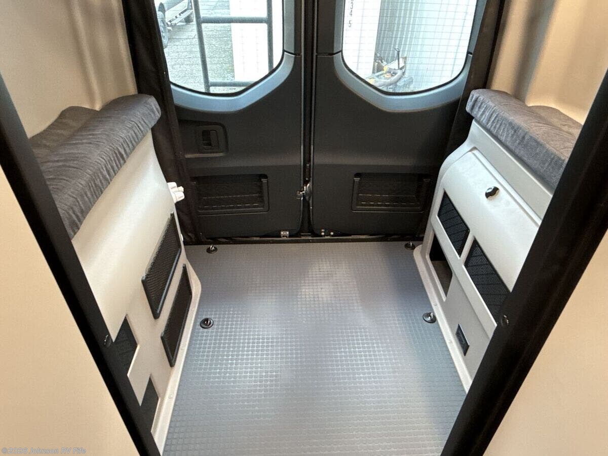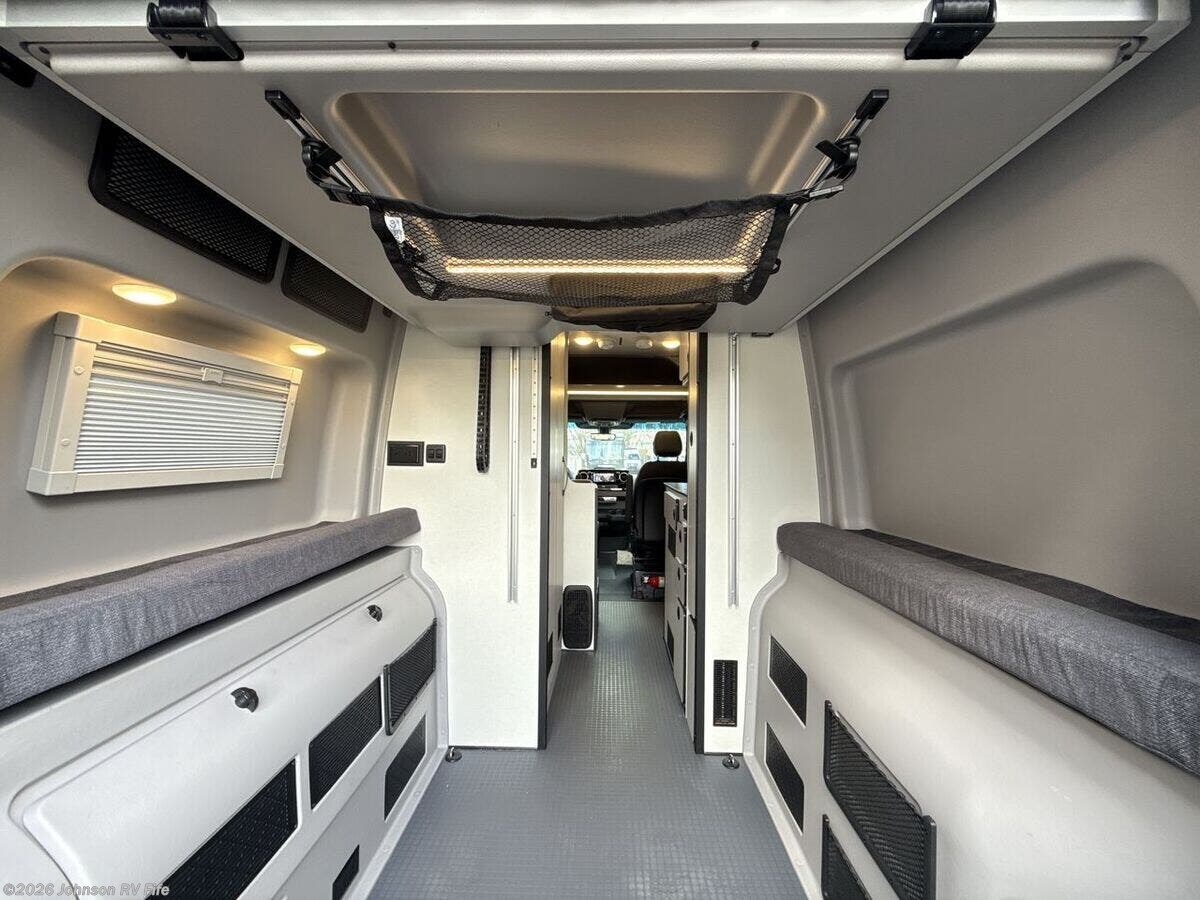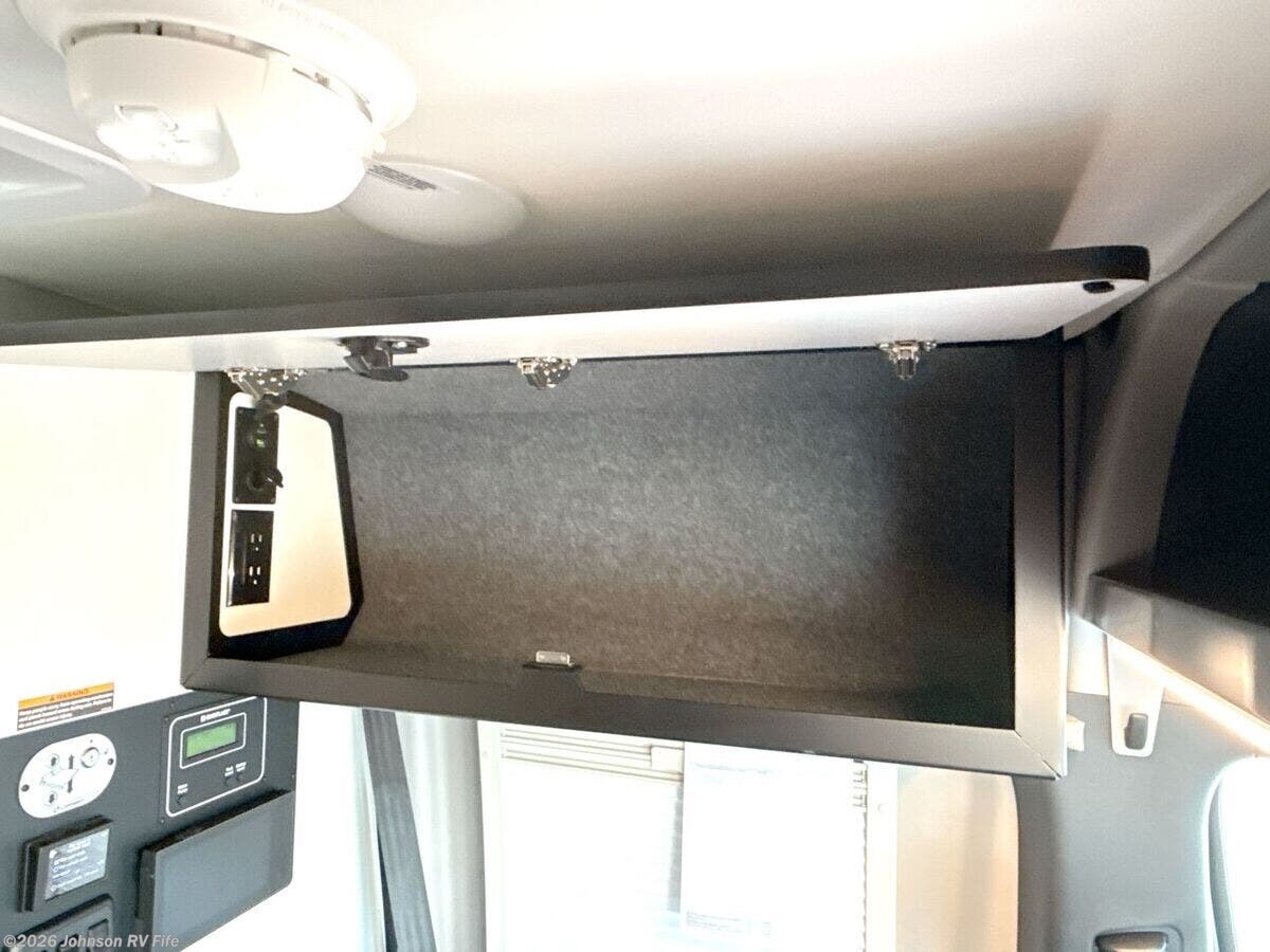 Features Include: 220-Amp Alternator, 4-Wheel ABS Brakes, Spare Tire, Rear Mud Guards, Blind Spot Assist, Traffic Sign Assist, Power Windows, Sunvisors, 12v Powerpoints, Navigation, WiFi Hotspot, Rear Camera, Pet Leash Attachment, Porch Light, 75-inch High Ceiling, Cassette Shades, Lounge Seat, Removable Table, Pantry, Stainless Steel Sink, Spice Rack, L-Track Tie Downs, Bi-fold Door, 31x26-inch Wet Bath, Mirror, Shower Wall Surround, Dual Control Faucet, Flexible Showerhead, 5kWh EcoFlow Battery, 210w Solar, Multi-zone Heating, 10-foot Sewer Hose, Luggage Rack