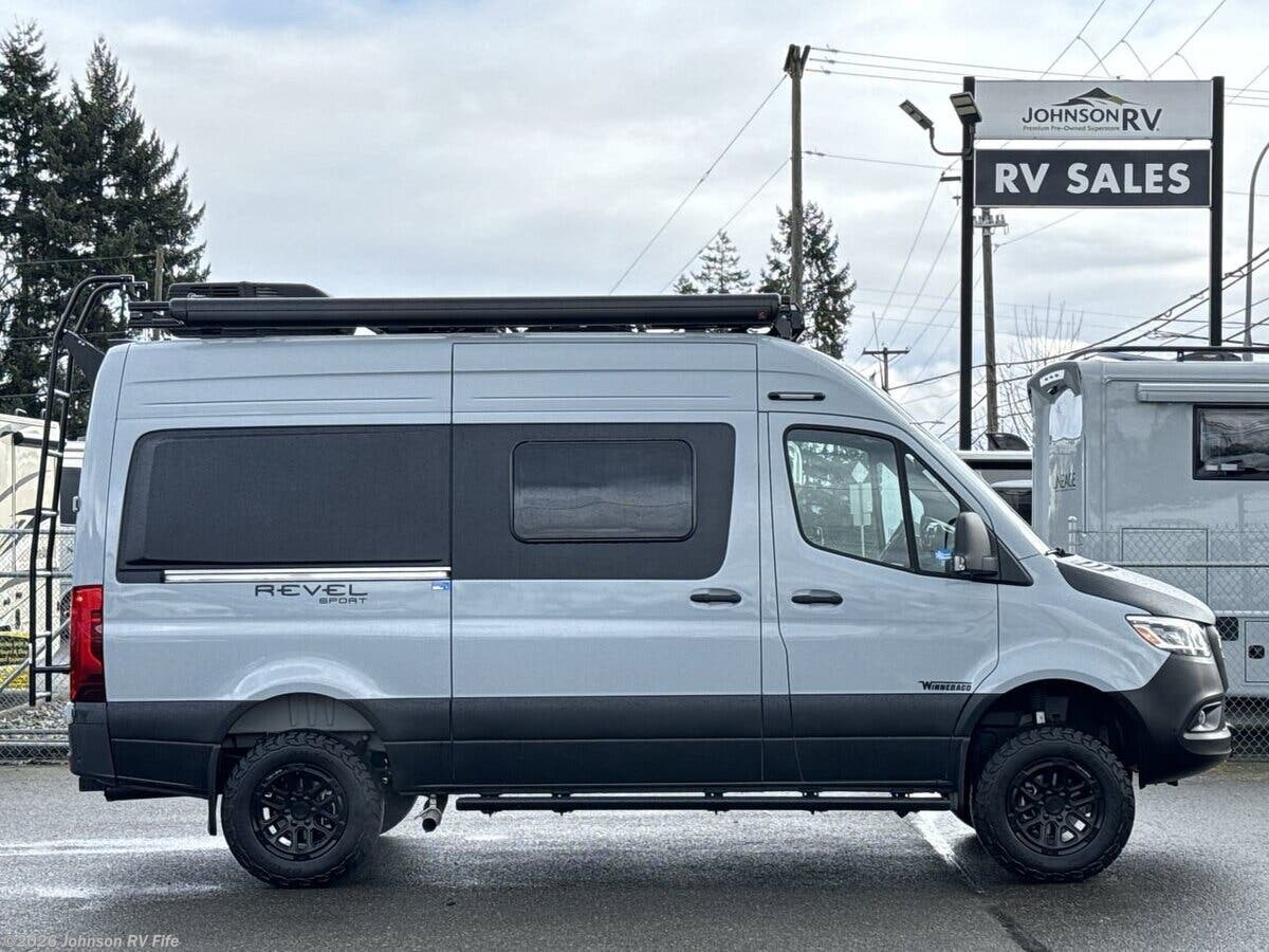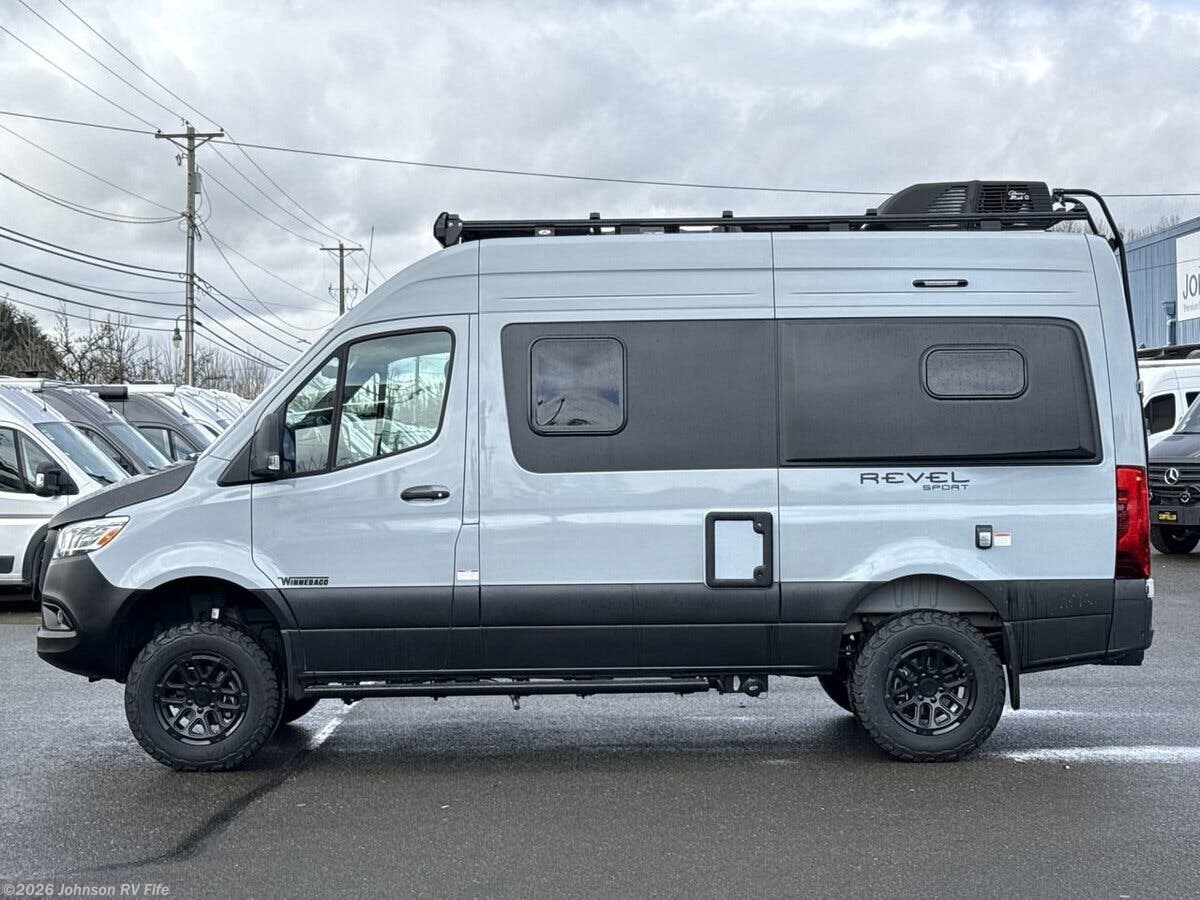 The 2026 Winnebago Revel Sport is a cutting-edge recreational vehicle designed for adventure seekers who crave both comfort and capability. Built on the robust Mercedes-Benz AWD Sprinter Chassis, this Class B RV is powered by a 2.0L HO 4-Cylinder Turbo-Diesel Engine paired with a 9-Speed Automatic with Overdrive, ensuring a smooth and efficient drive. The 220-Amp Alternator and 4-Wheel ABS Brakes enhance reliability and safety, while the LED High Performance Headlamps and Rear Mud Guards add to its rugged appeal. With a 5000# Hitch and 7-Pin Plug, towing additional gear is a breeze. Safety is paramount in the Revel Sport, featuring a suite of advanced systems such as Active Braking Assist, Blind Spot Assist, and Attention Assist Driver Alert. Traffic Sign Assist and Active Lane Keeping Assist provide additional peace of mind, while DISTRONIC PLUS Adaptive Cruise Control and the Rain Sensor Integrated Wet Wiper System ensure a stress-free driving experience. Auto Headlamps with High Beam Assist further enhance visibility in varying conditions. The cab is designed for comfort and convenience, equipped with Tubular Aluminum Running Boards, a Driver Side Service Light, and Power Door Lock Remote Control. Power Windows, Sunvisors, and 12v Powerpoints add to the ease of use. The Dash Charging Station, Digital Rearview Mirror, and Power Defrost Side-Mirrors are complemented by Slide Swivel Recline Heated Seats with Adjustable Lumbar and Headrest. Folding Privacy Screens, Driver and Passenger Airbags, and Power Assist Steering with a Tilt and Telescoping Steering Wheel ensure a comfortable and safe journey. The MBUX Touchscreen Infotainment system with Navigation, WiFi Hotspot, Intelligent Voice Control, Rear Camera, and Mercedes me Connect App keep you connected and entertained on the road. Inside, the living spaces are thoughtfully designed with Ground Effect Lighting, a Pet Leash Attachment, and a Porch Light. The Side Screen Door with Magnetic Closure and Rear Screen Door Blackout Panel provide privacy and comfort. Heavy Duty Vinyl Flooring and RAM Tough-Track Mounts Throughout offer durability and versatility. The 75-inch High Ceiling, LED Lighting with Dimmer, and Tinted Acrylic Dual-Pane Windows create a bright and airy atmosphere. Cassette Shades, a Lounge Seat, Removable Table, and Deluxe Power Vent with Rain Cover add to the living area's functionality. The dining area is equipped with a Pantry, High Pressure Laminate Countertop, and Removable Countertop Extension. A Stainless Steel Sink with Single Control Faucet, 12v 3cf Refrigerator Freezer, Spice Rack, and Portable Single-Burner Induction Cooktop make meal preparation a pleasure. The Fold-Down Outdoor Table and Outdoor Cooking options allow for al fresco dining. Electronics are state-of-the-art, featuring a Systems Monitor Panel, LED Touchscreen for Heating System, and Solar Power Touchscreen Interface. LP CO and Smoke Detectors, along with 120v, 12v, USB-A, and USB-C Charge Ports, ensure safety and connectivity. Sleeping arrangements are luxurious with a Power Lift Bed featuring WinnSleep Technology, Molded Pockets and Zip Storage, and Two Pocket Storage Nets. Under-Bed Gear Storage and L-Track Tie Downs provide ample space for belongings. A Power Roof Vent with Rain Cover ensures comfort. The bathroom is well-appointed with a Bi-fold Door, 31x26-inch Wet Bath, Mirror, and Two Collapsible Storage Containers. A Shower Wall Surround, Dual Control Faucet, Flexible Showerhead, Removable Clothes Rod, Swivel Cassette Toilet, and Power Bath Vent offer convenience and functionality. Mechanically, the Revel Sport is equipped with the Winnebago Power Standard, Touchscreen Interface, and a 5kWh EcoFlow Battery. The EcoFlow Power Hub Pro, 3600w Inverter Charger, 210w Solar, and MPPT Solar Charger Battery Disconnect Switch provide reliable power. An Automatic Dual-Battery Charge System, 30-Amp SmartPlug Service Cord, and Ground Fault Interrupter ensure safety. The Hydronic Heat System, Multi-zone Heating, LED Touchscreen Panel Water Center Control Panel, Heated Fresh and Gray Holding Tanks, Winterization Package, 10-foot Sewer Hose, and Outdoor Wash Station offer convenience and comfort. The coach build includes a Luggage Rack and Movable Roof Access Ladder, enhancing the vehicle's versatility and storage capabilities. The 2026 Winnebago Revel Sport is a perfect blend of luxury, functionality, and adventure-ready features, making it an ideal choice for those who love to explore the great outdoors. ?? Features Include: 220-Amp Alternator, 4-Wheel ABS Brakes, Spare Tire, Rear Mud Guards, Blind Spot Assist, Traffic Sign Assist, Power Windows, Sunvisors, 12v Powerpoints, Navigation, WiFi Hotspot, Rear Camera, Pet Leash Attachment, Porch Light, 75-inch High Ceiling, Cassette Shades, Lounge Seat, Removable Table, Pantry, Stainless Steel Sink, Spice Rack, L-Track Tie Downs, Bi-fold Door, 31x26-inch Wet Bath, Mirror, Shower Wall Surround, Dual Control Faucet, Flexible Showerhead, 5kWh EcoFlow Battery, 210w Solar, Multi-zone Heating, 10-foot Sewer Hose, Luggage Rack