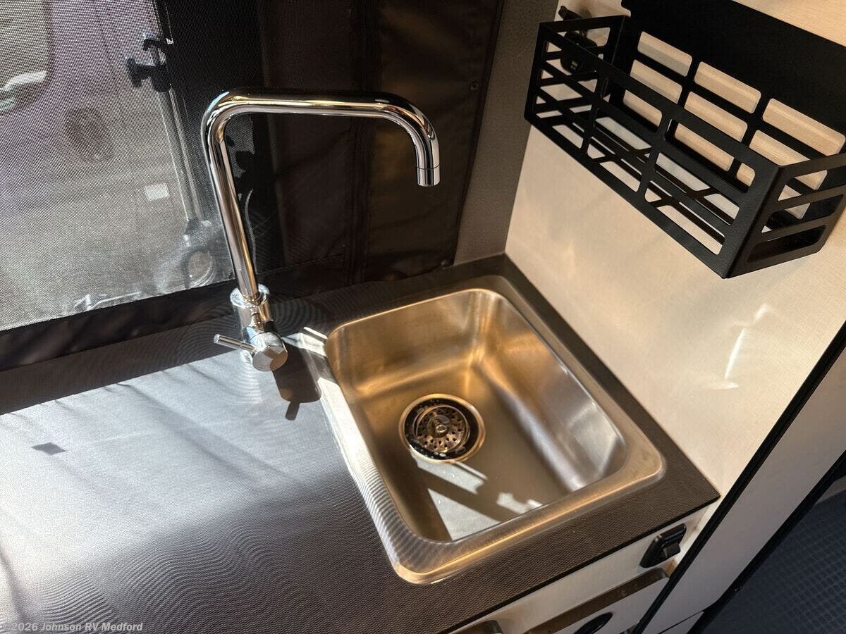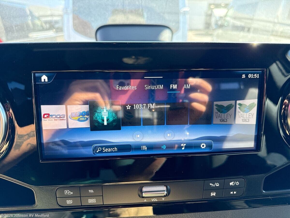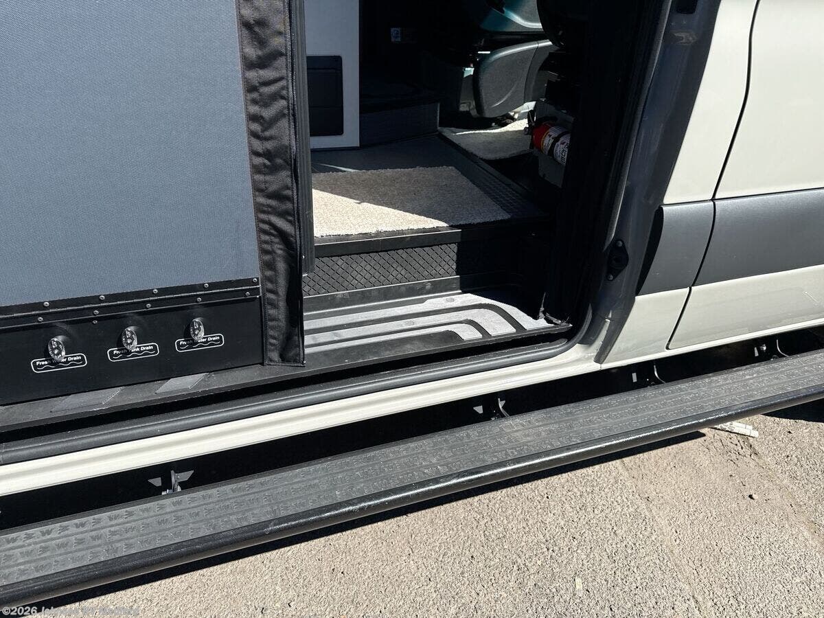 Features Include: 220-Amp Alternator, 4-Wheel ABS Brakes, Spare Tire, Rear Mud Guards, Blind Spot Assist, Traffic Sign Assist, Power Windows, Sunvisors, 12v Powerpoints, Navigation, WiFi Hotspot, Rear Camera, Pet Leash Attachment, Porch Light, 75-inch High Ceiling, Cassette Shades, Lounge Seat, Removable Table, Pantry, Stainless Steel Sink, Spice Rack, L-Track Tie Downs, Bi-fold Door, 31x26-inch Wet Bath, Mirror, Shower Wall Surround, Dual Control Faucet, Flexible Showerhead, 5kWh EcoFlow Battery, 210w Solar, Multi-zone Heating, 10-foot Sewer Hose, Luggage Rack