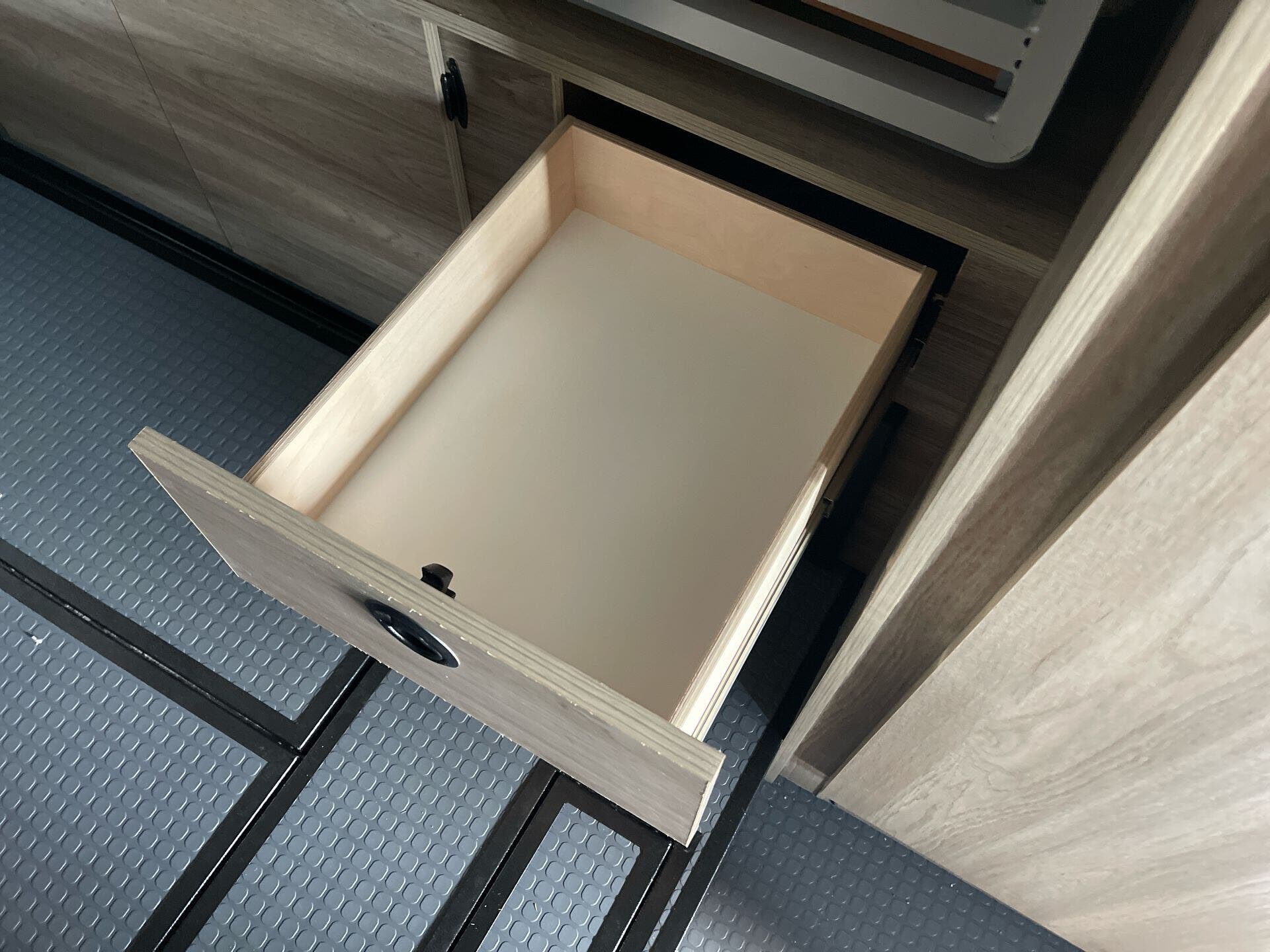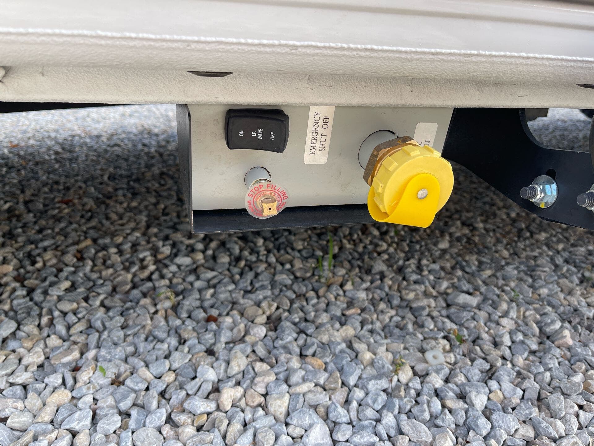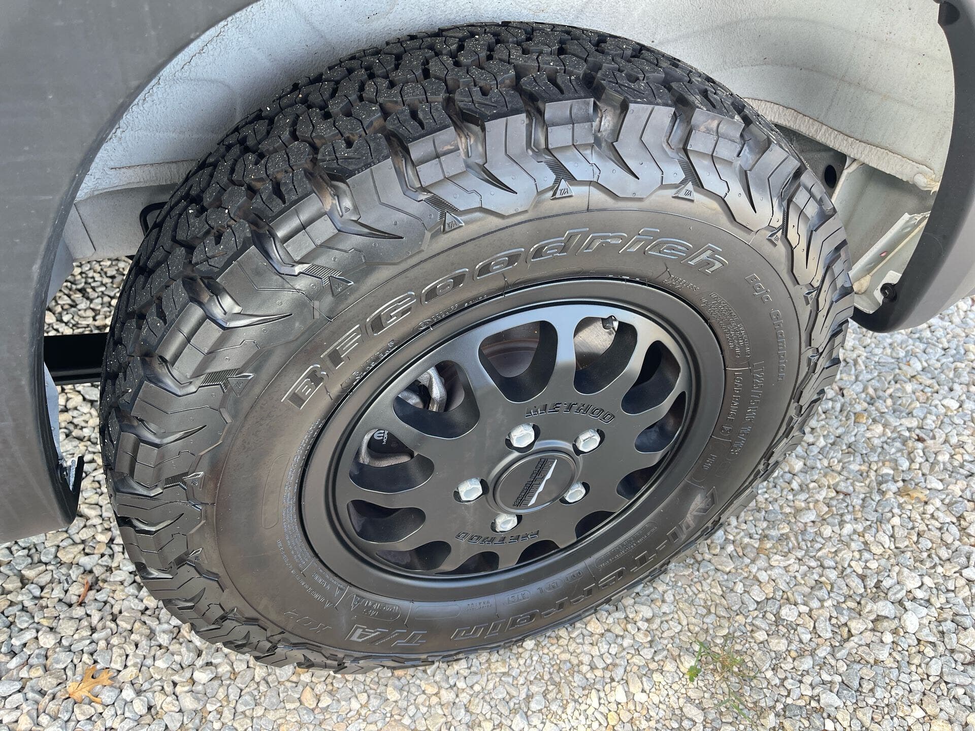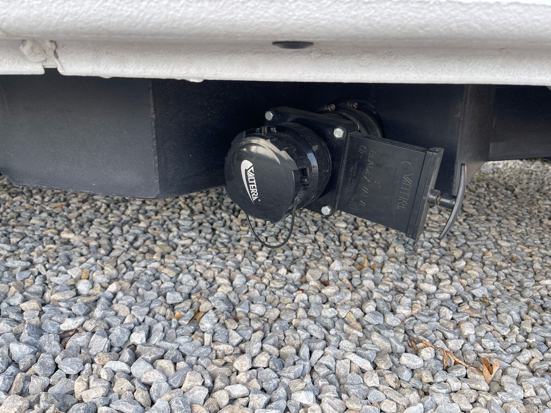 Designed for off-grid adventure, it includes heavy-duty vinyl flooring, tinted windows, below-floor storage, L-track gear tie-downs (on 59PX), and a smart water system with on-demand pump, exterior wash port, and Eco-Hot water heater. Power is supported by dual AGM batteries, 30-amp hookup, and 220W flexible solar panels paired with a power converter/charger.