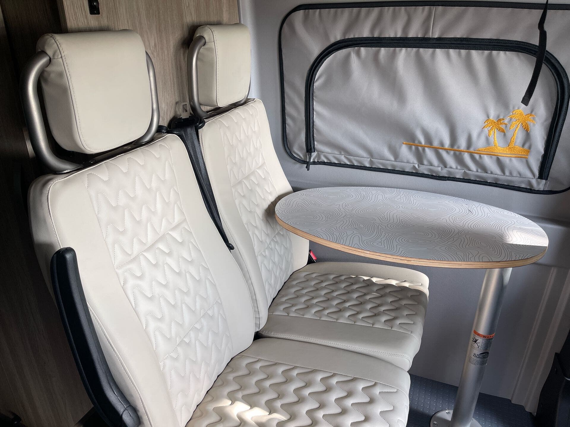 Heating and cooling include Truma Combi Eco system and a 13,500?BTU A/C, plus cassette-style toilet and durable cassette tanks. Ease of life is evident in features like powered roof vent, removable pedestal table, USB/12V/110V ports, and heavy insulation.