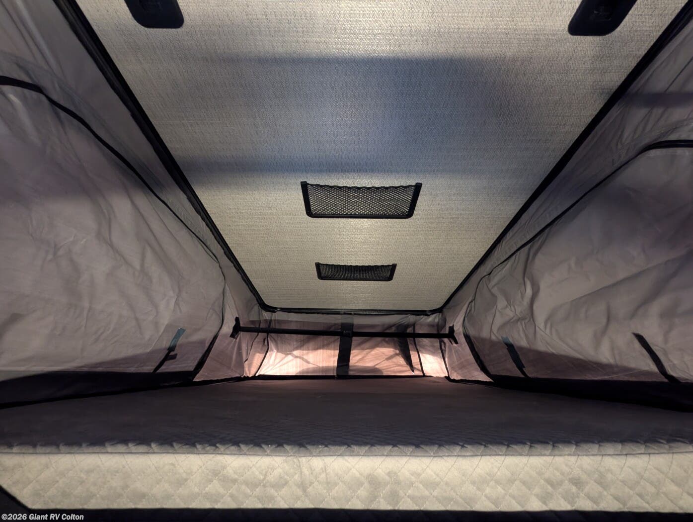 - Flexible Sleeping & Lounge Areas featuring a rear sideline sofa that converts to a comfortable queen-size sleeping platform plus an optional pop-top sleeping area above, allowing multiple configurations for relaxing or sleeping.