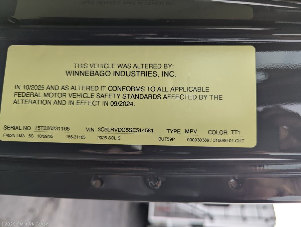 Request More Info on this 2026 Winnebago Solis 59P Offered for sale by Giant RV