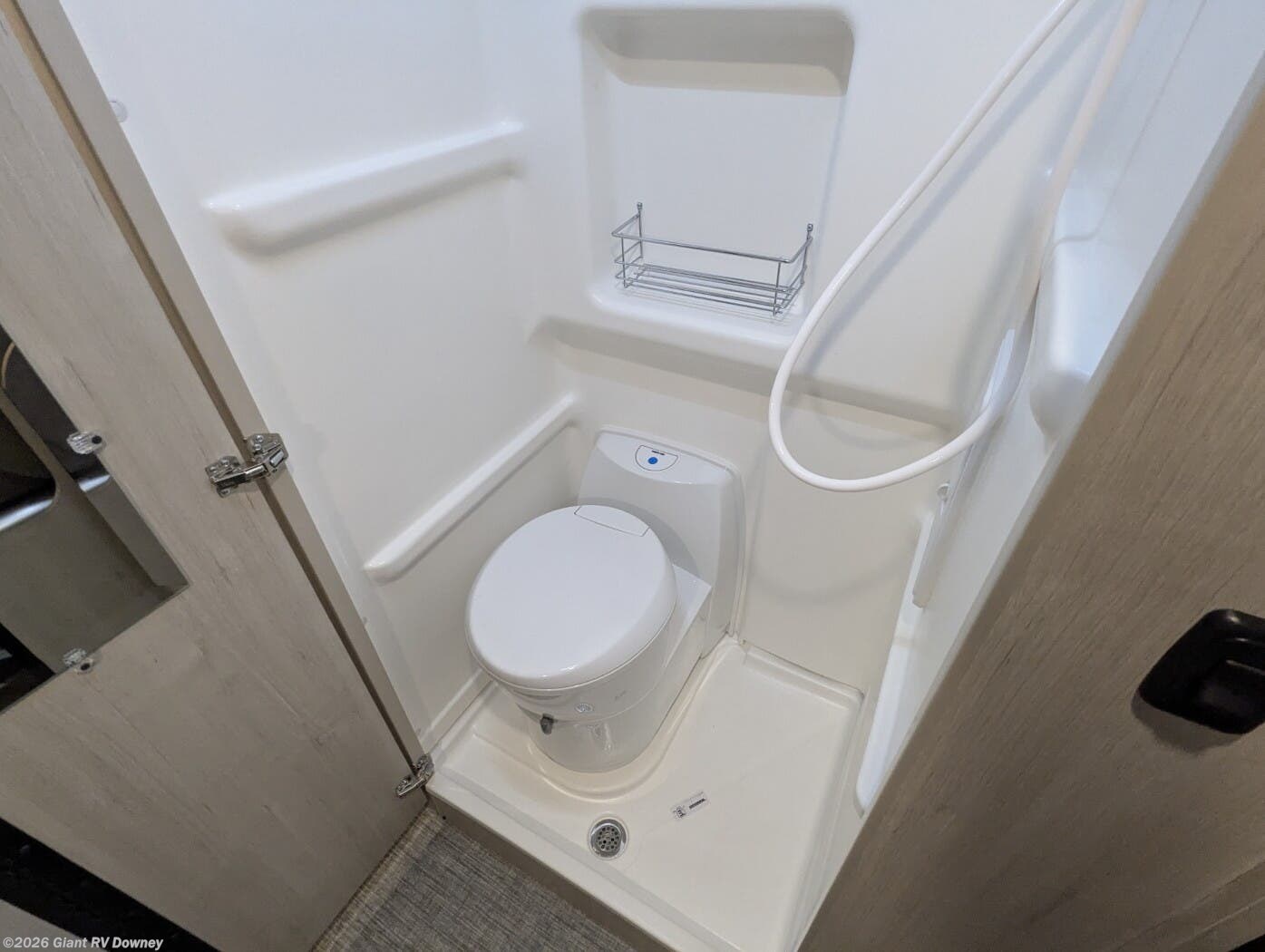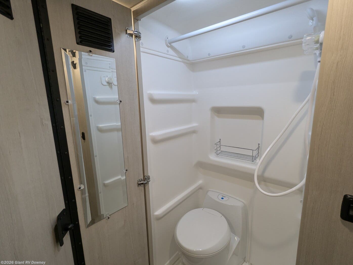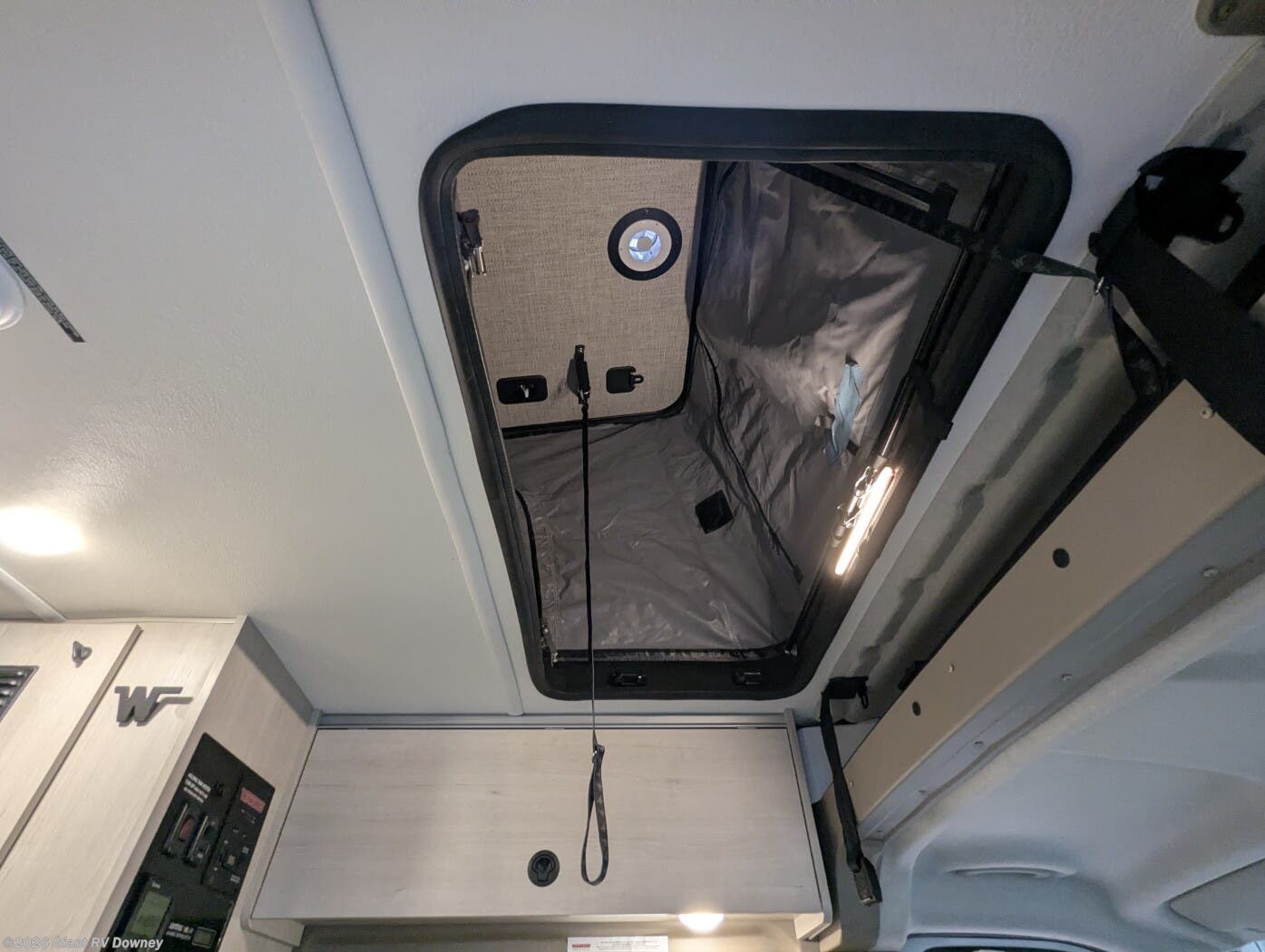 - Dedicated Wet Bath & Comfort Features with a cassette toilet, shower, skylight, and vanity storage, plus LED lighting, USB/110 V outlets, privacy shades, and optional lithium power/solar prep for off-grid capability.