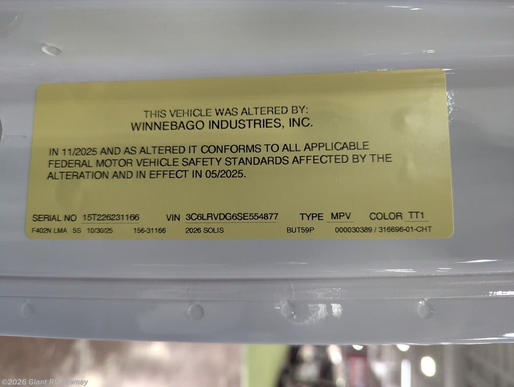 Request More Info on this 2026 Winnebago Solis 59P Offered for sale by Giant RV
