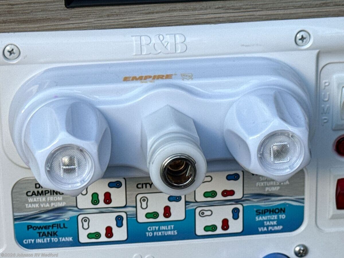 Features Include: 3.6L V6 Gas Engine, 280 HP, 180-Amp Alternator, 4-Wheel ABS Brakes, 3500# Hitch, Crosswind Assist, Power Windows, 12v Power Points, Side Screen Door, Rear Screen Door, Entry Assist Bar, Tinted Coach Windows, LED Ceiling Lights, Reading Lights, Below Floor Storage, Ladder, Laminate Countertops, Stainless Steel Sink, Spice Rack, Systems Center, Slat Bed System, Wet Bath, Bathroom Mirror, Flexible Shower Head, 30-Amp Service Cord, LP Tank with Gauge, Eco-Hot Water System, 10-Foot Sewer Hose, Outside Wash Station