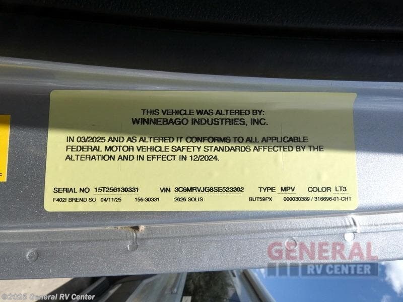 Request More Info on this 2026 Winnebago Solis 59PX Offered for sale by General RV Center
